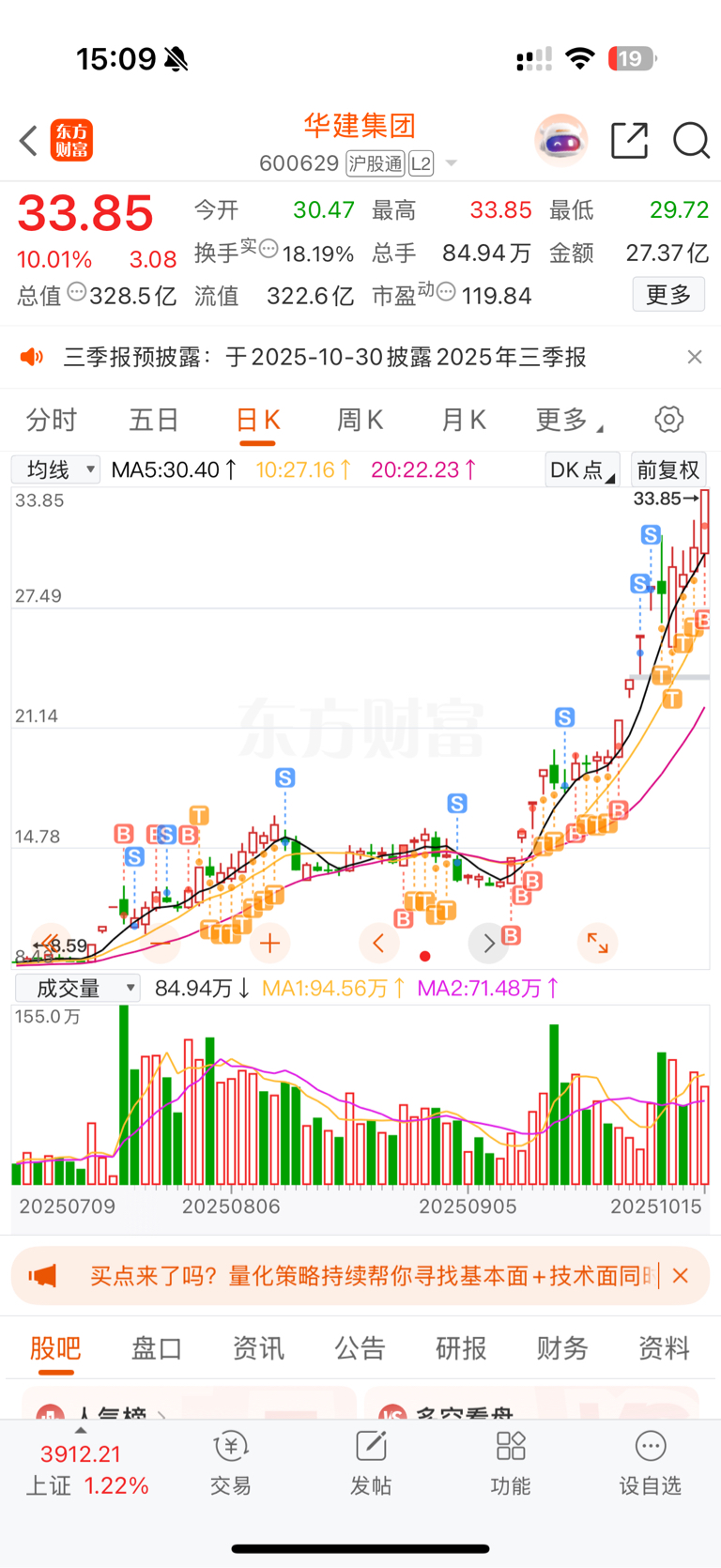 $华建集团(SH600629)$ 我了个豆,今年的妖王不会就是你吧,昨天炸板吓跑了我一部分仓位,今天又纠错买回来了,今年还剩一个半月,妖王会是你吗华建大哥