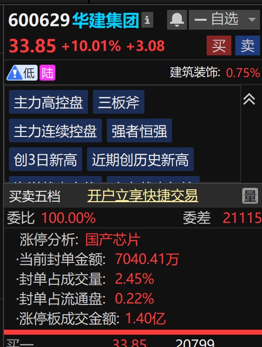 $华建集团(SH600629)$ 涨停分析:国产芯片