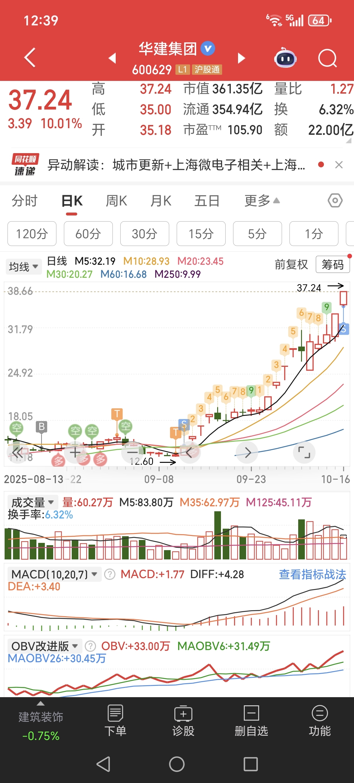 没时间盯盘,2个月了伴随华建一路成长,没有几次操作。