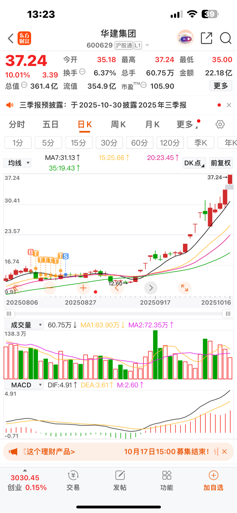 $华建集团(SH600629)$ 这个票当初很好的,11块买的12块卖的,一个月后37了
