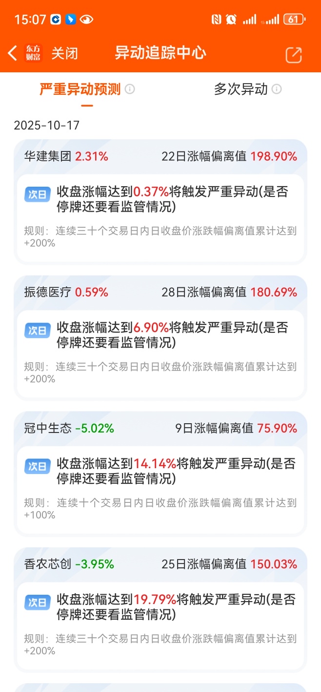 下个交易日app计算的触发严重异动上限是0.37%,周末消息中美下周在马来西亚第四次谈判,外围股市上涨,加上周五期指交割日已过,假设下周一大盘反弹1%,是否上限上移到1.37%,大盘涨2%,上限上移到2.37%,因为本来周五触发上限是3.37%,大盘大跌后就2.5%左右了,当然比例可能也不一定完全就是大盘涨幅%简单加0.37%
