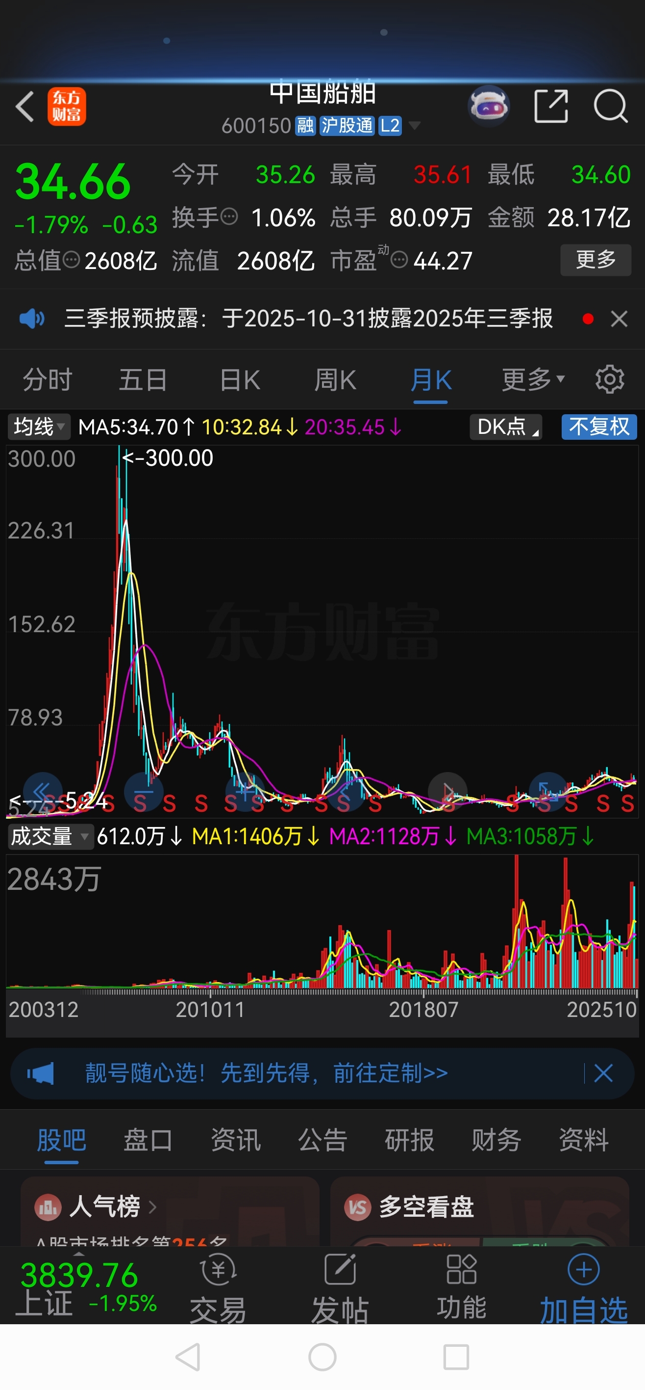 $华建集团(SH600629)$ 中国船舶借壳沪东重机,涨了58倍,从5.3涨到300