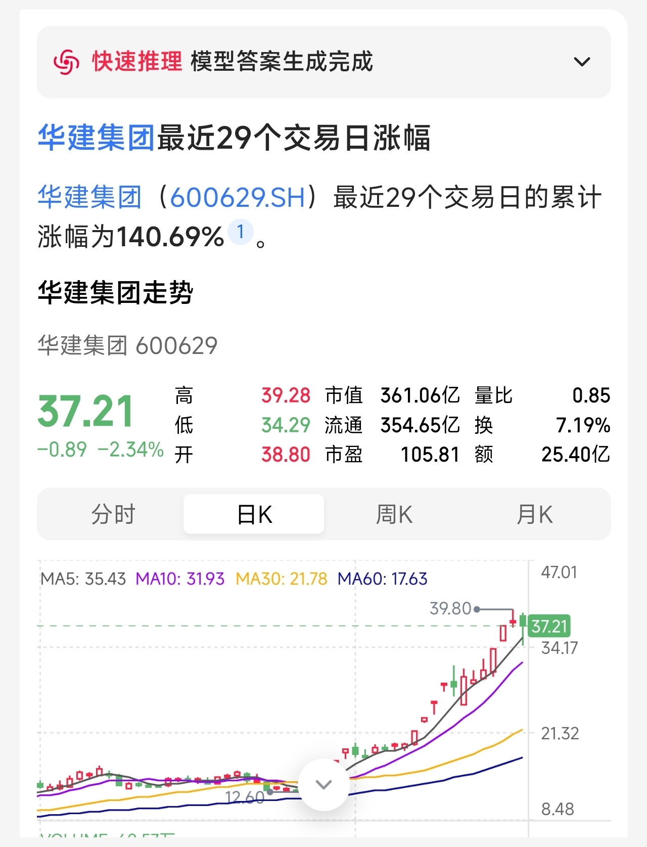 $华建集团(SH600629)$ 华建最近29个交易日累计涨幅140.69啊 明天还需要控制异动吗?