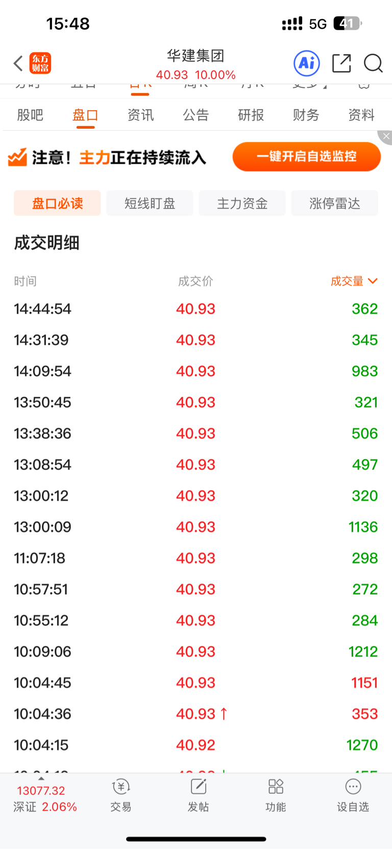 $华建集团(SH600629)$ 为什么只看说2点44分的成交量?