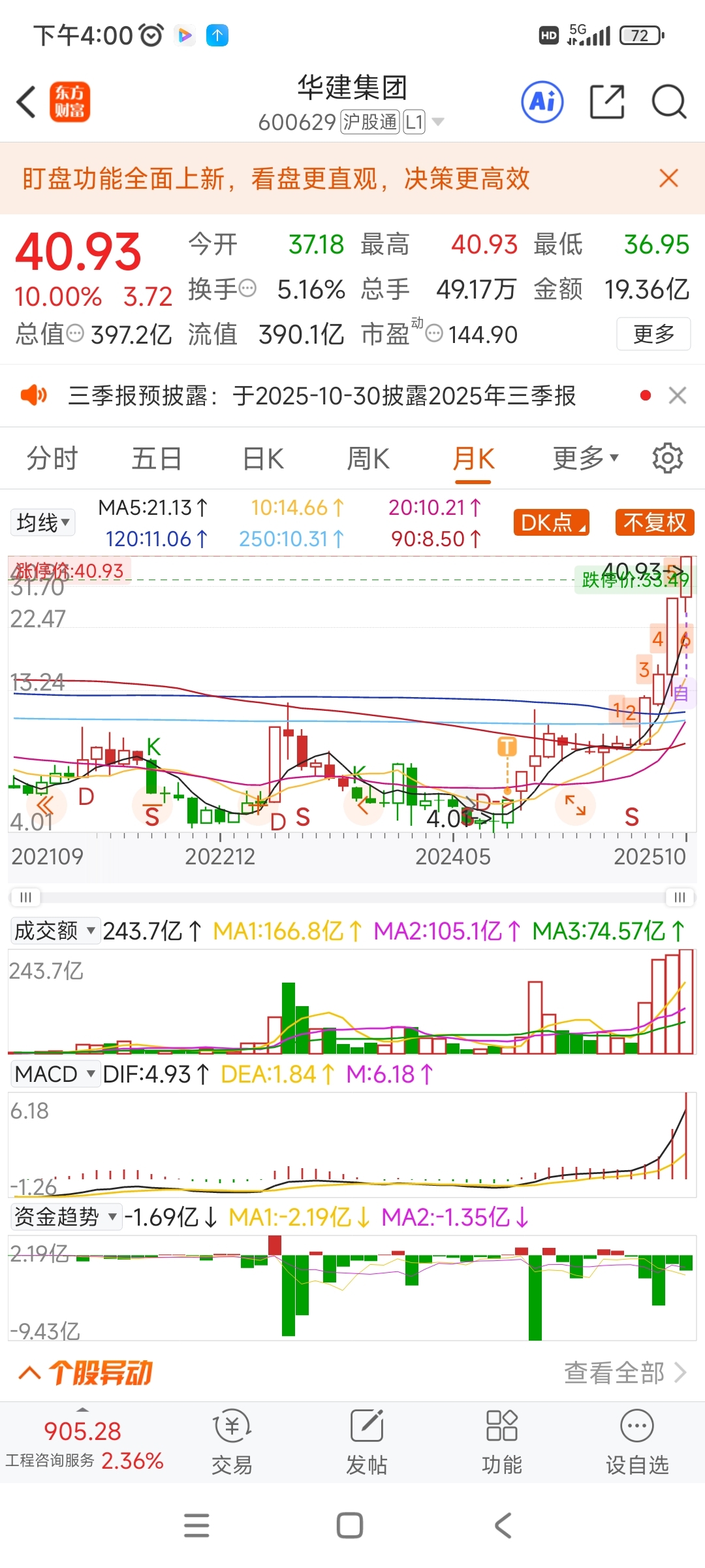 $华建集团(SH600629)$ 去年10月买的,拿住就10倍了