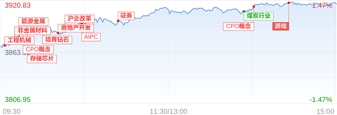 1 深地概念 自然资源部明确'十五五'期间将重点推进深地产业标准化工作,政策支持力度加大 相关个股:$恒立钻具(920942)$、$德石股份(301158)$(2天2板)、$石化油服(600871)$、$中化岩土(002542)$、$山河智能(002097)$ 2 培育钻石 超硬材料在军工、航天等领域的应用价值提升,带动培育钻石概念股集体大涨。 相关个股:$英诺激光(301021)$、$四方达(300179)$(昨日首板)、$黄河旋风(600172)$(6天3板)、$恒盛能源(605580)$(2天2板)、$晶盛机电(300316)$ 3 存储芯片 存储芯片价格上涨及算力需求激增推动行业景气度提升 相关个股:$雅创电子(301099)$、$大为股份(002213)$、$太极实业(600667)$、$深康佳A(000016)$、$香农芯创(300475)$ 4 CPO概念 剑桥科技港股IPO成为通信设备领域最大IPO,带动CPO概念股集体上涨。 相关个股:$中富电路(300814)$、$仕佳光子(688313)$、$新易盛(300502)$、$汇绿生态(001267)$(2天2板)、$中际旭创(300308)$ 5 消费电子 苹果新一代iPhone需求超预期带动股价创历史新高,提振消费电子板块热度。 相关个股:$昀冢科技(688260)$、$环旭电子(601231)$、$闻泰科技(600745)$、$工业富联(601138)$、$福立旺(688678)$市场热点
