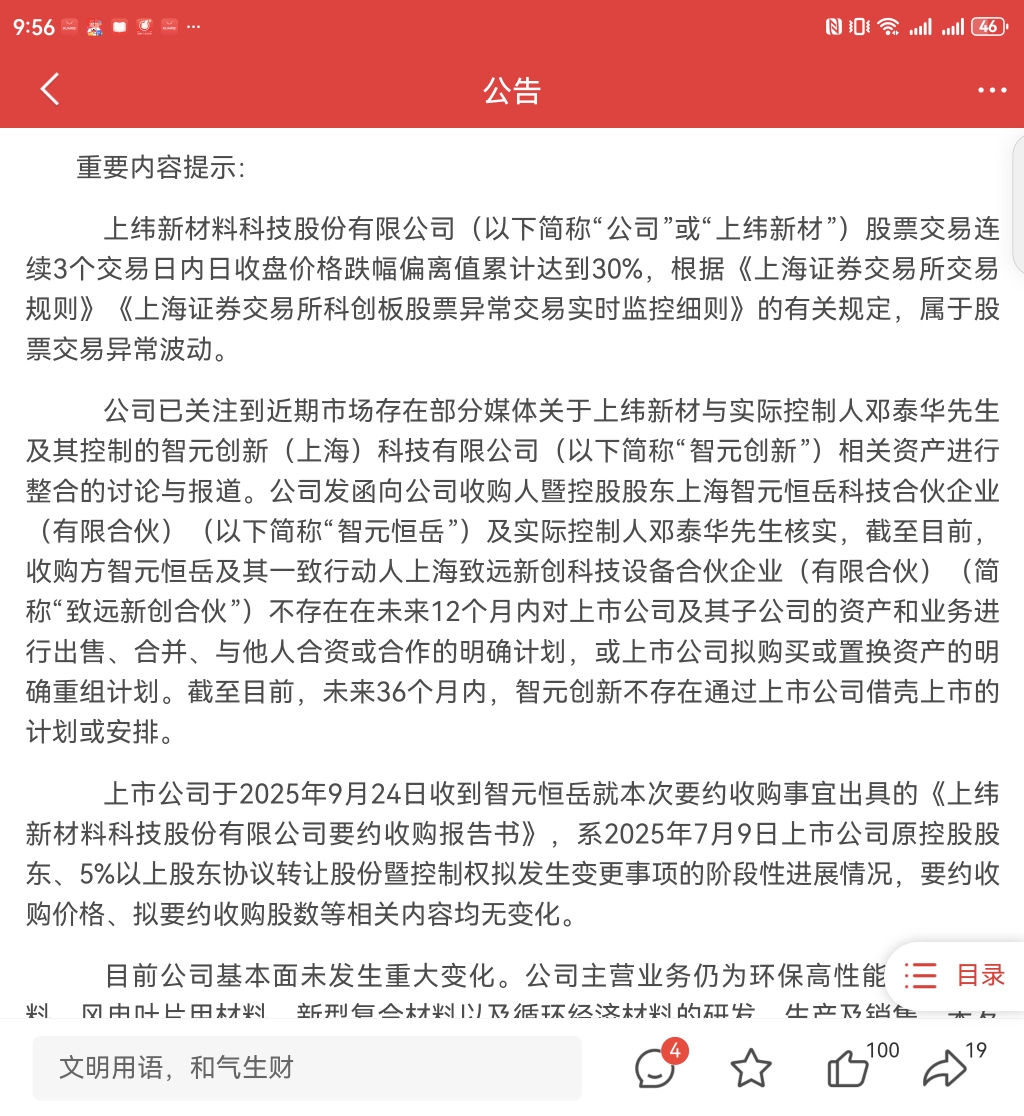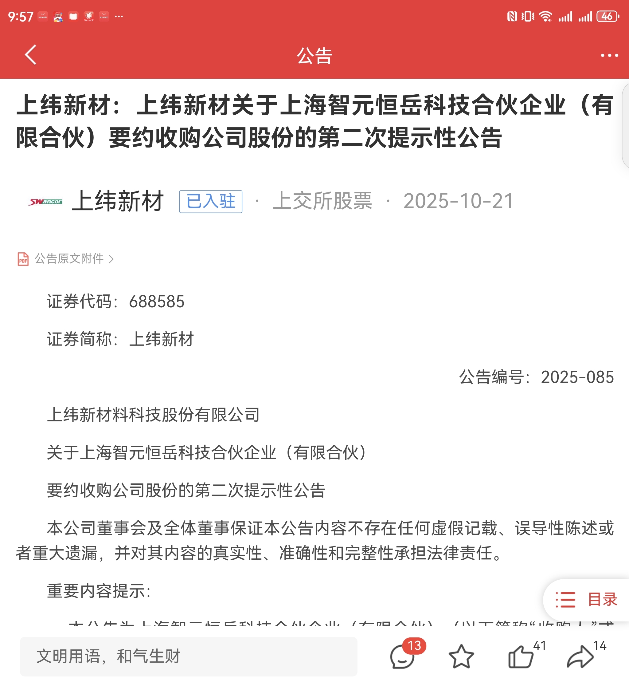 $华建集团(SH600629)$ 上纬新材不是发出公告跟华建集团一模一样吗?过没有多久今天又承双方在洽谈