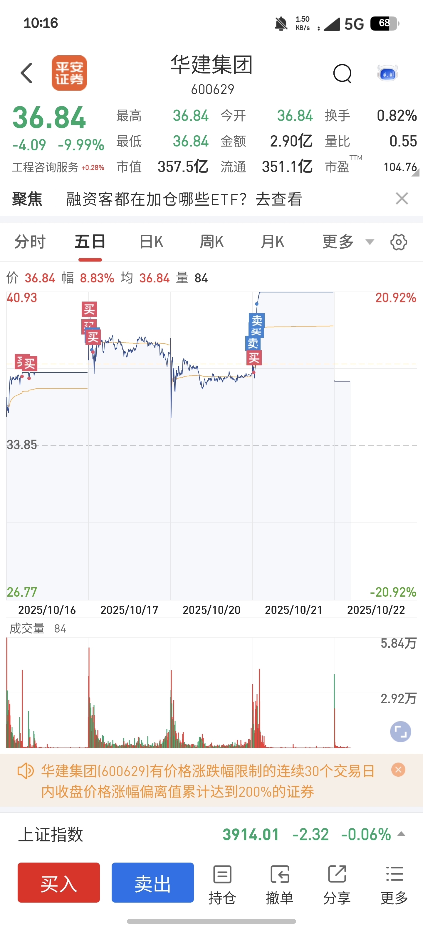 $华建集团(SH600629)$ 走运,昨天想做T,一路卖,没机会买,还剩一成仓在里面。