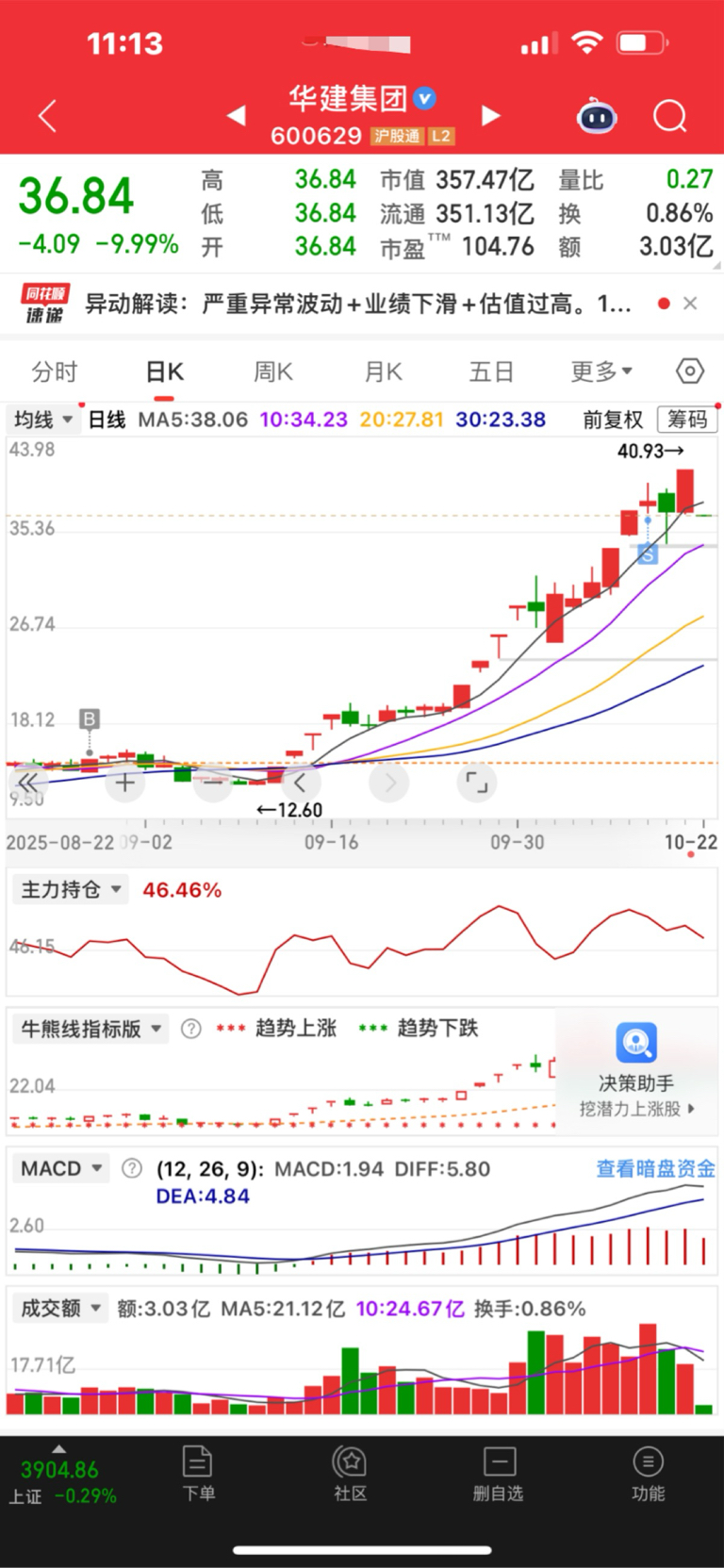 $华建集团(SH600629)$ 心不能太贪、前天出了、估计四个跌停起步
