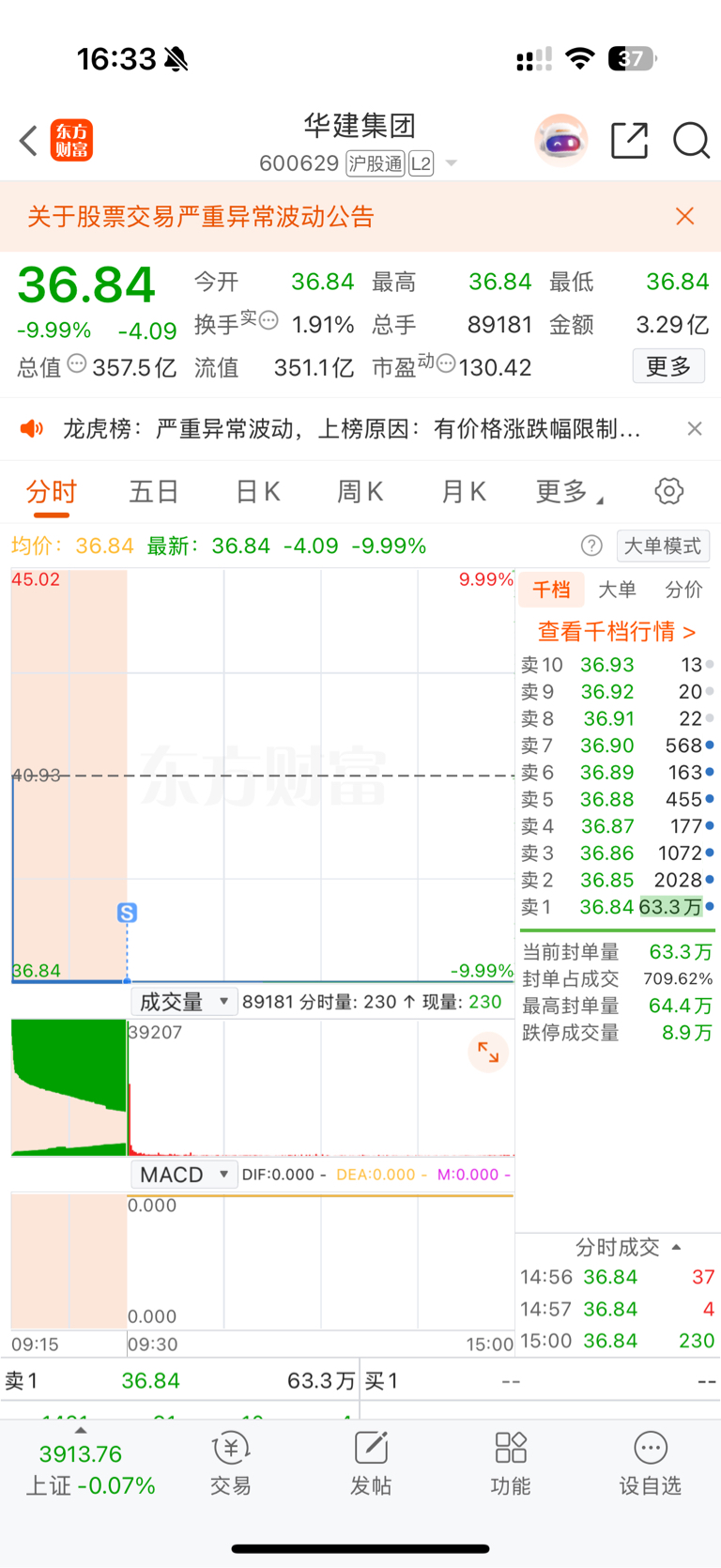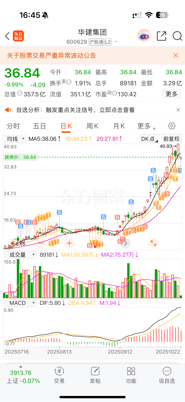 $华建集团(SH600629)$ 尘归尘,土归土。昨天涨停还想减仓来着,本想着居然去破异动了那就多格局格局,奈何晚上公告拉了坨大的,今天一字地板也是预期内的,地板就是我的止损线,今日出局不代表不看好,断线的出局休整也不是坏事,我还会再回来的。
