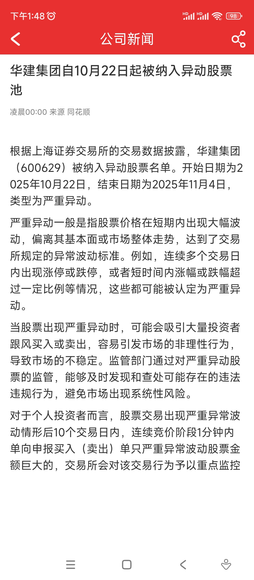 $华建集团(SH600629)$ 异动观察期结束,正好是股东减持日期前后,你细品