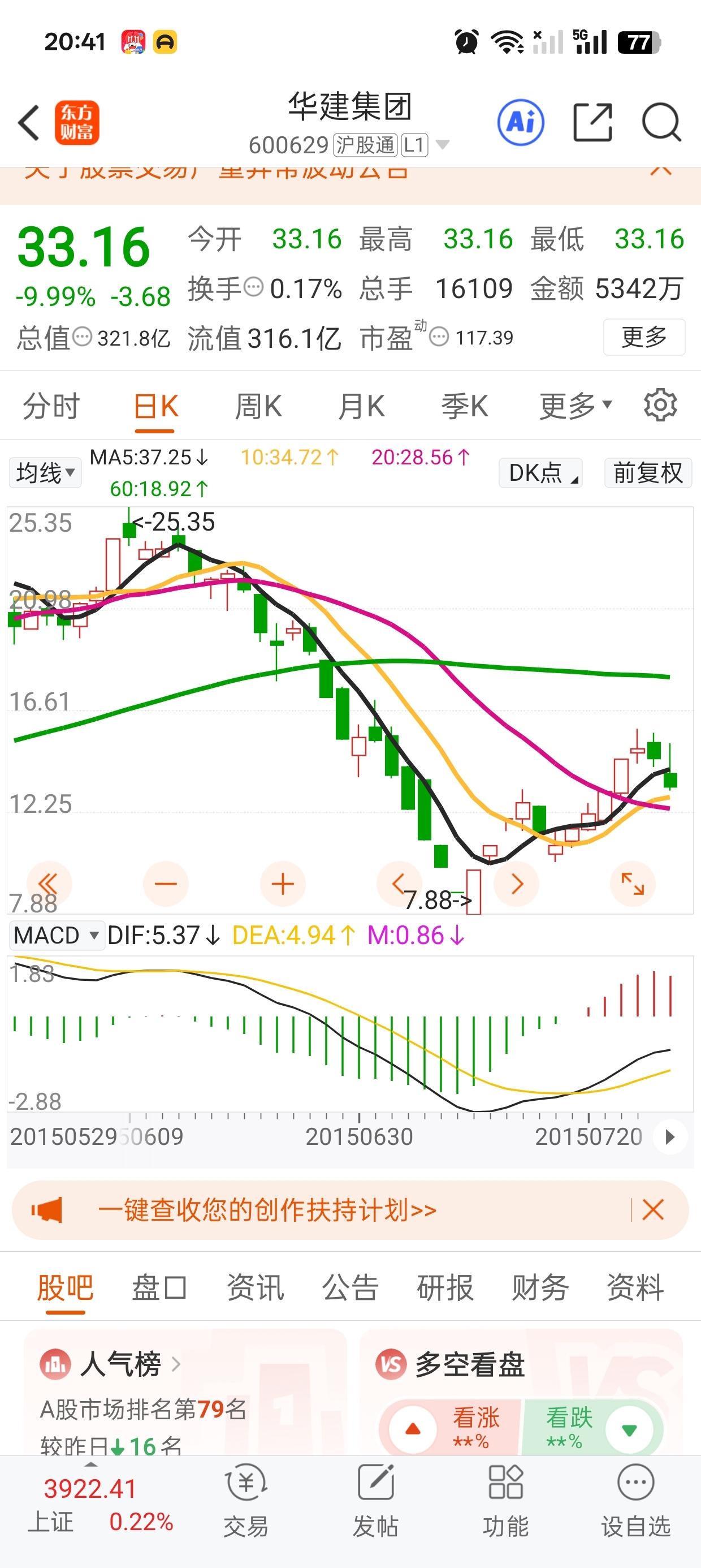 $华建集团(SH600629)$ 6124下来一个月跌了3倍但是也不是一字板天天这样