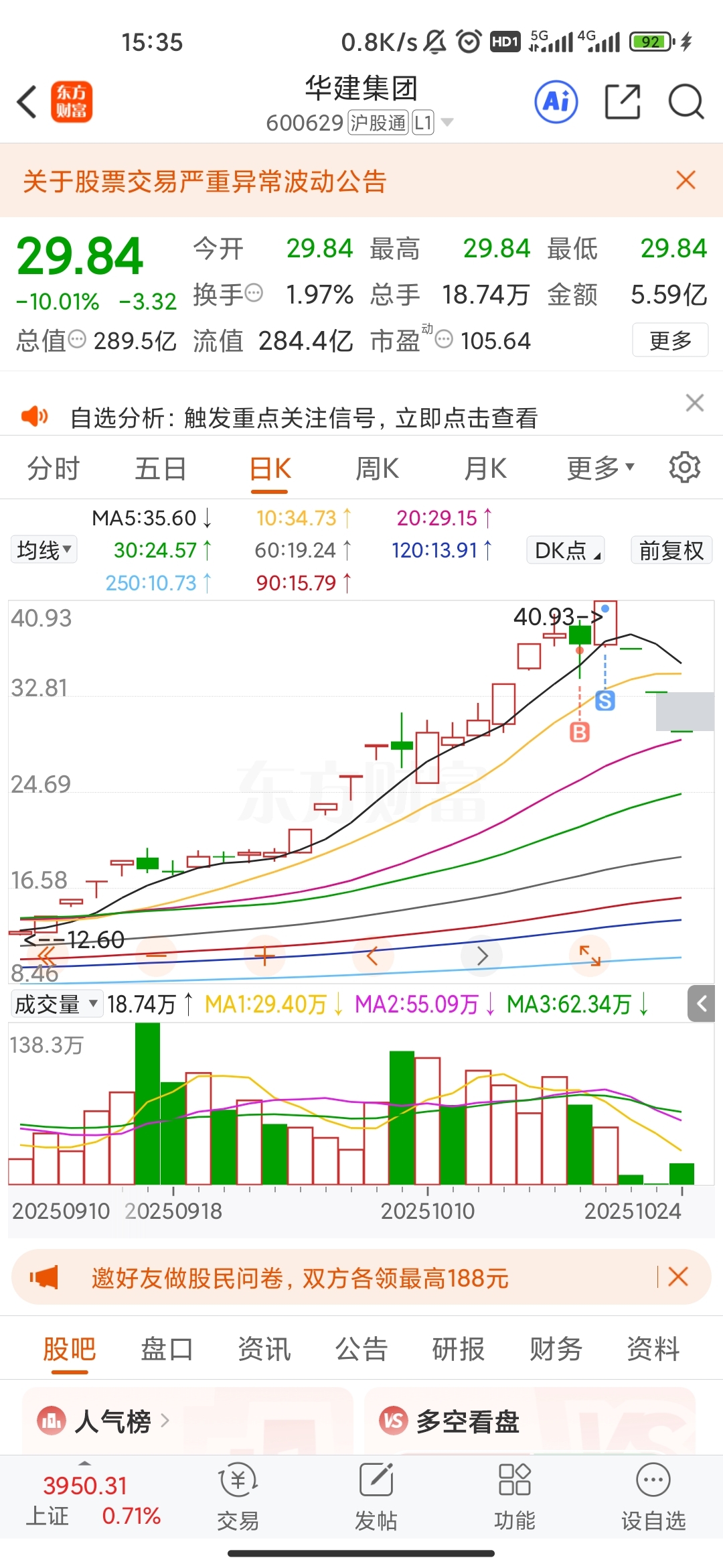 $华建集团(SH600629)$ 好消息,逃顶了。坏消息,进了白银有色也吃了个跌停,但是逃出来了