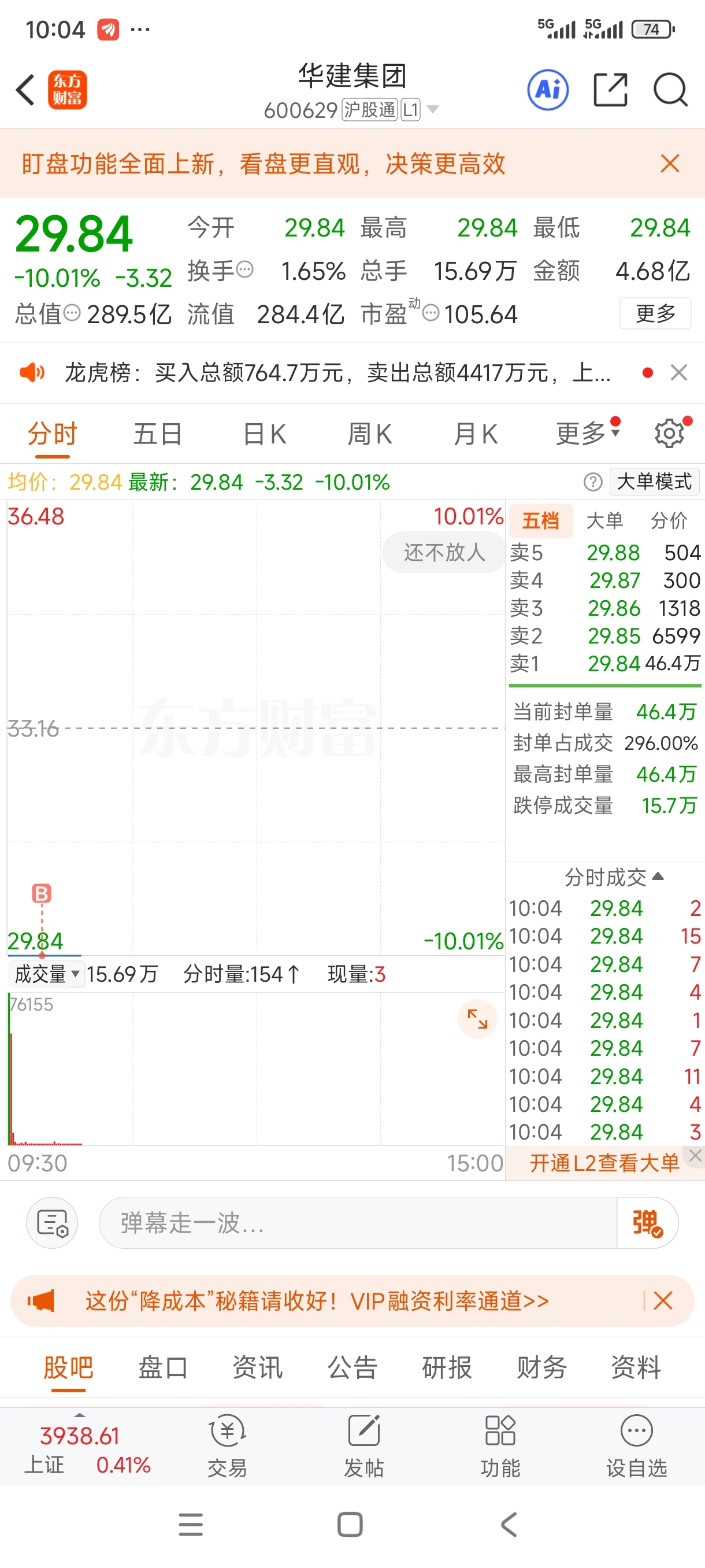 $华建集团(SH600629)$ 还有人比我更贪,三个跌停了都不来抄底,等啥呢