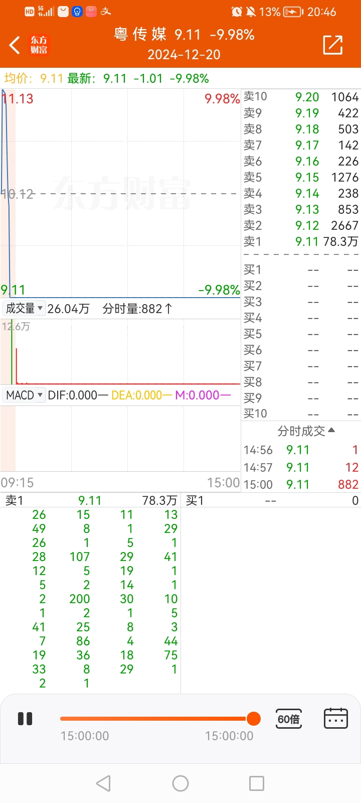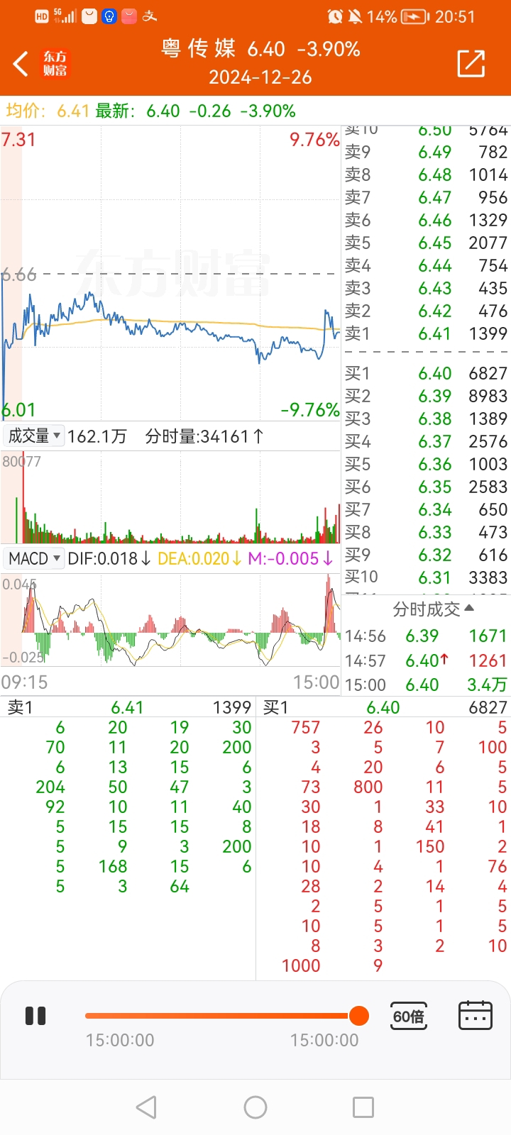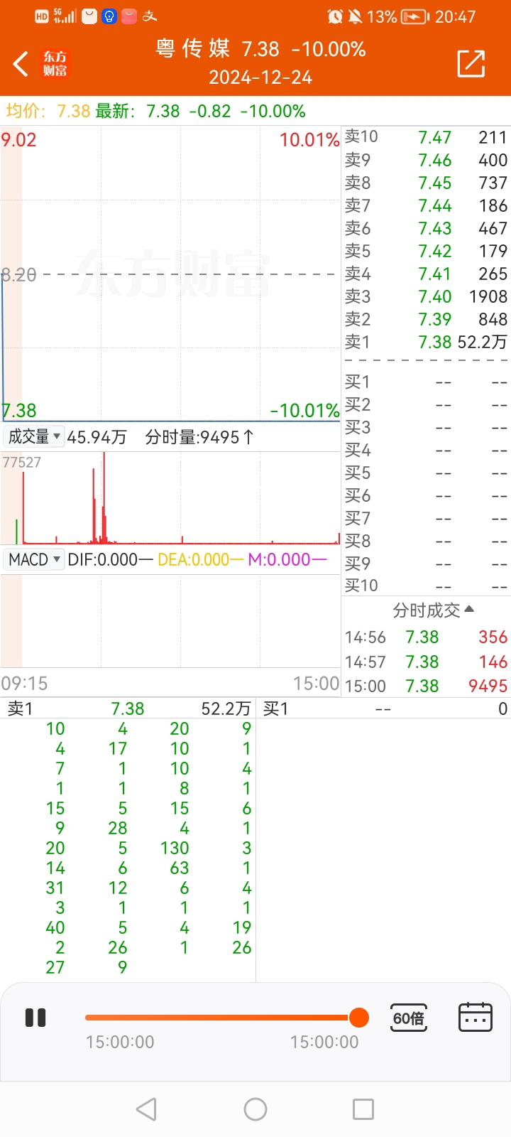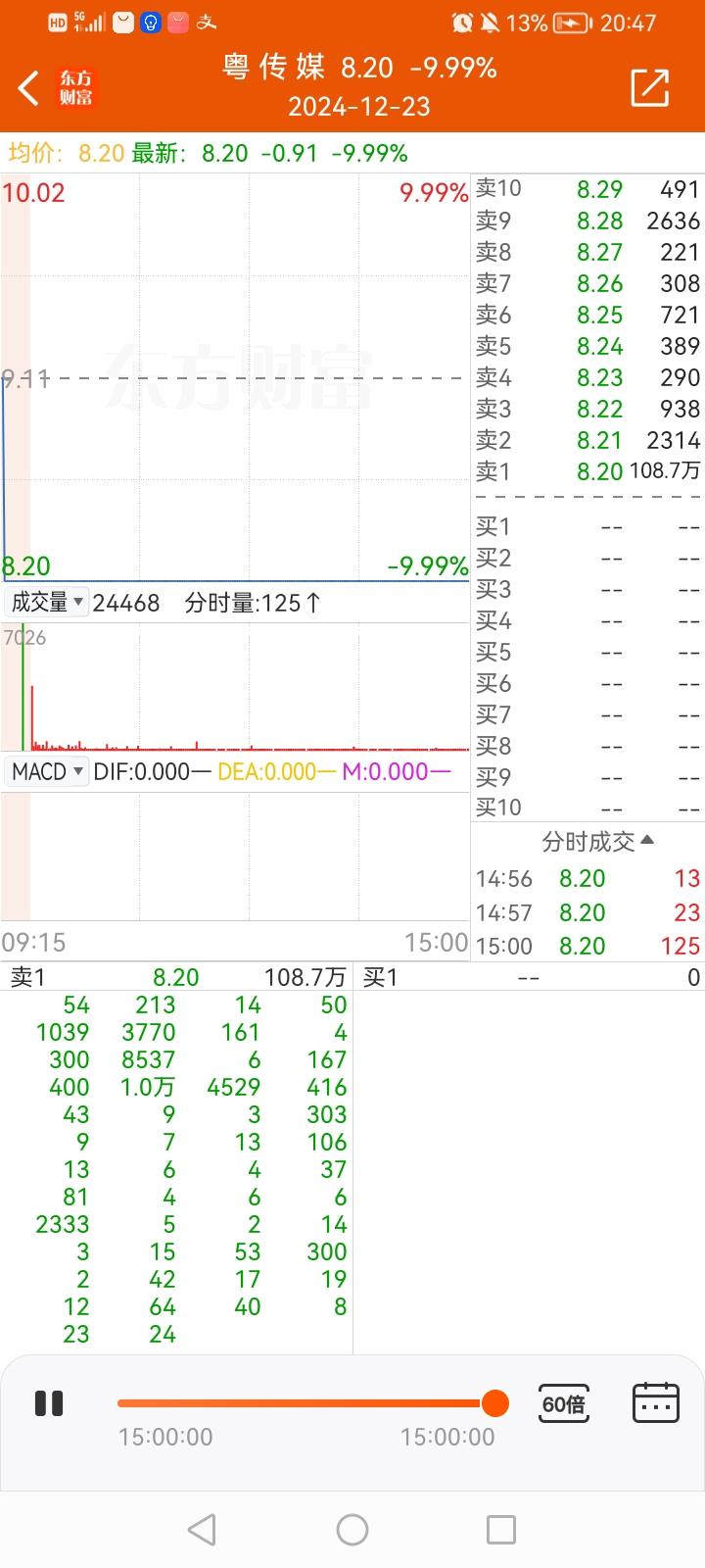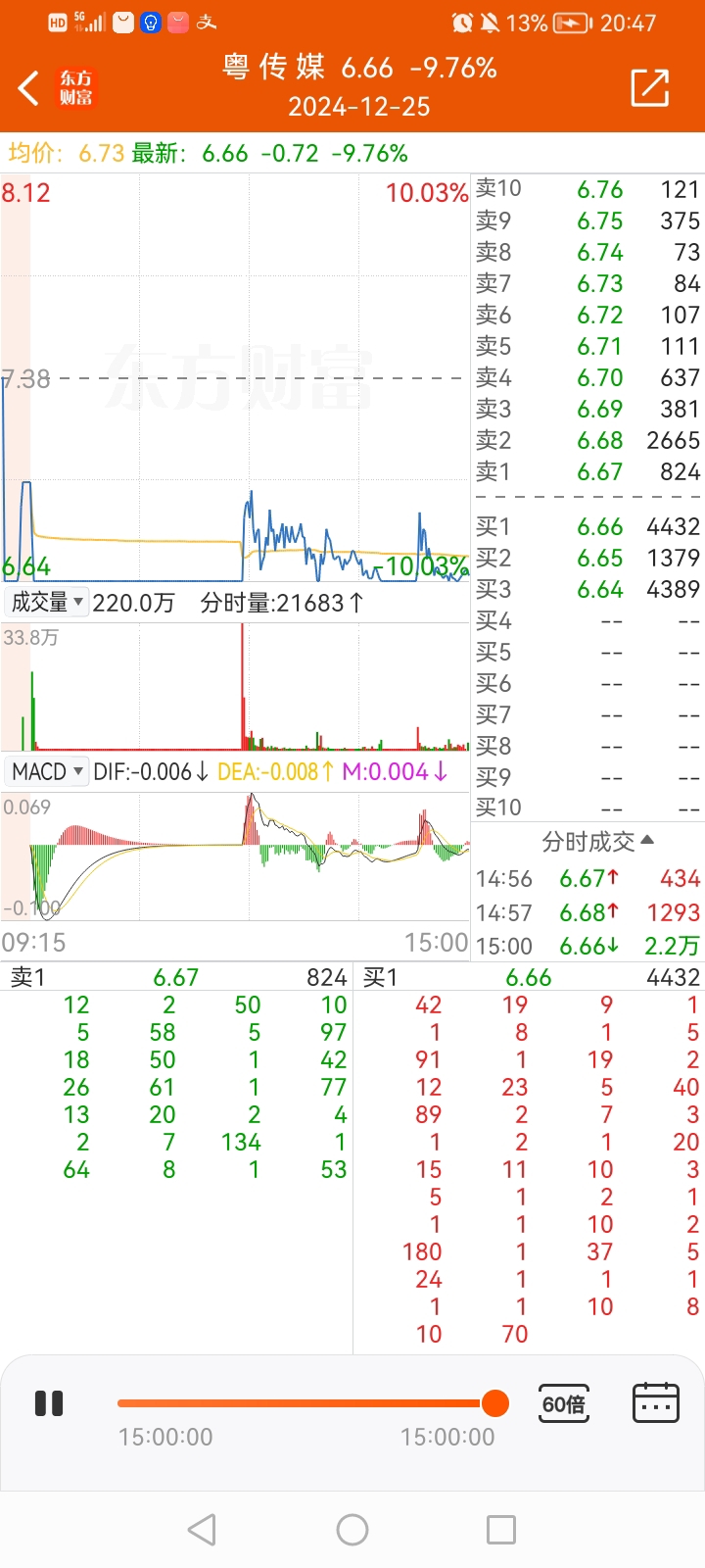 $华建集团(SH600629)$ $粤 传 媒(SZ002181)$ 我一直以为四个跌停板撬板性价比都很高,直到遇到的粤传媒,粤传媒2024.12.25在第四个跌停板撬板后回封跌停板,次日大低开低走!所以五个一字跌停再撬板成功率会大一点!下图仅供参考!