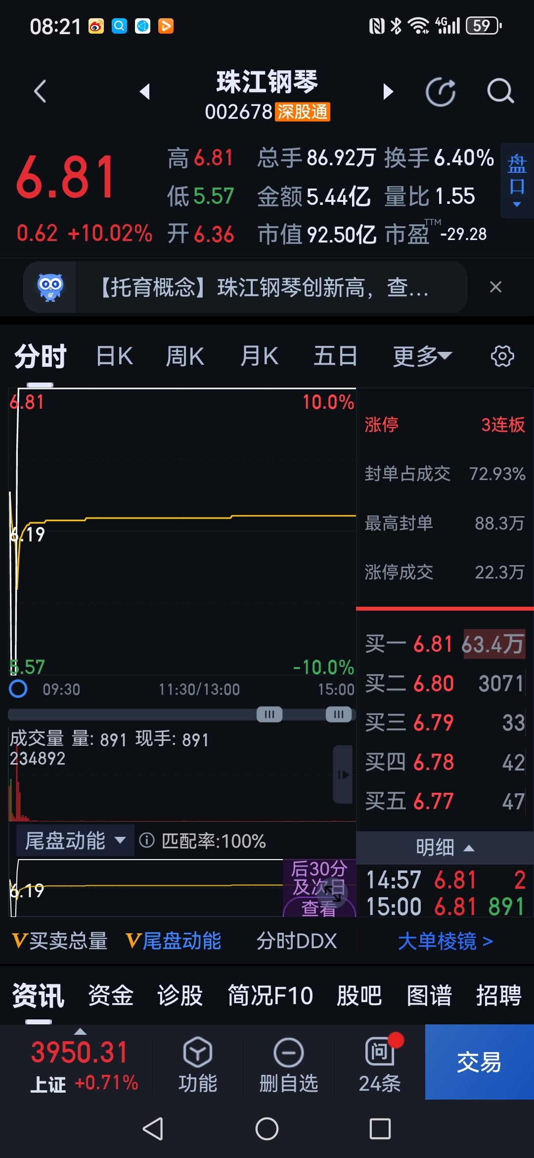 周五为了等着你的撬板俺错过了珠江钢琴,错过了睿能科技,希望华建周一能给个舒服的价
