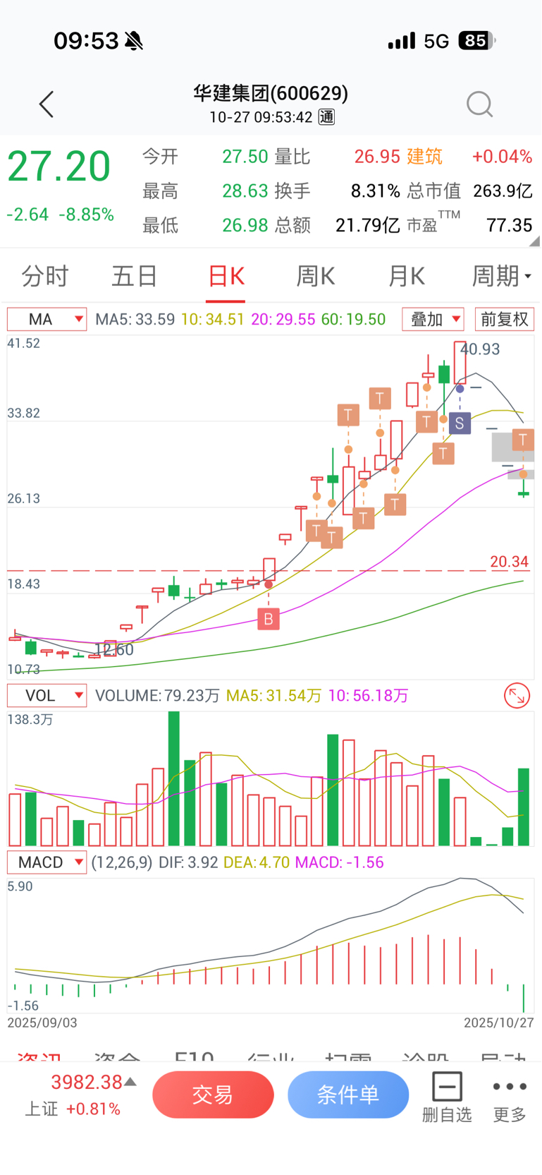 $华建集团(SH600629)$ 做T,你们都走吧。就这样吧。