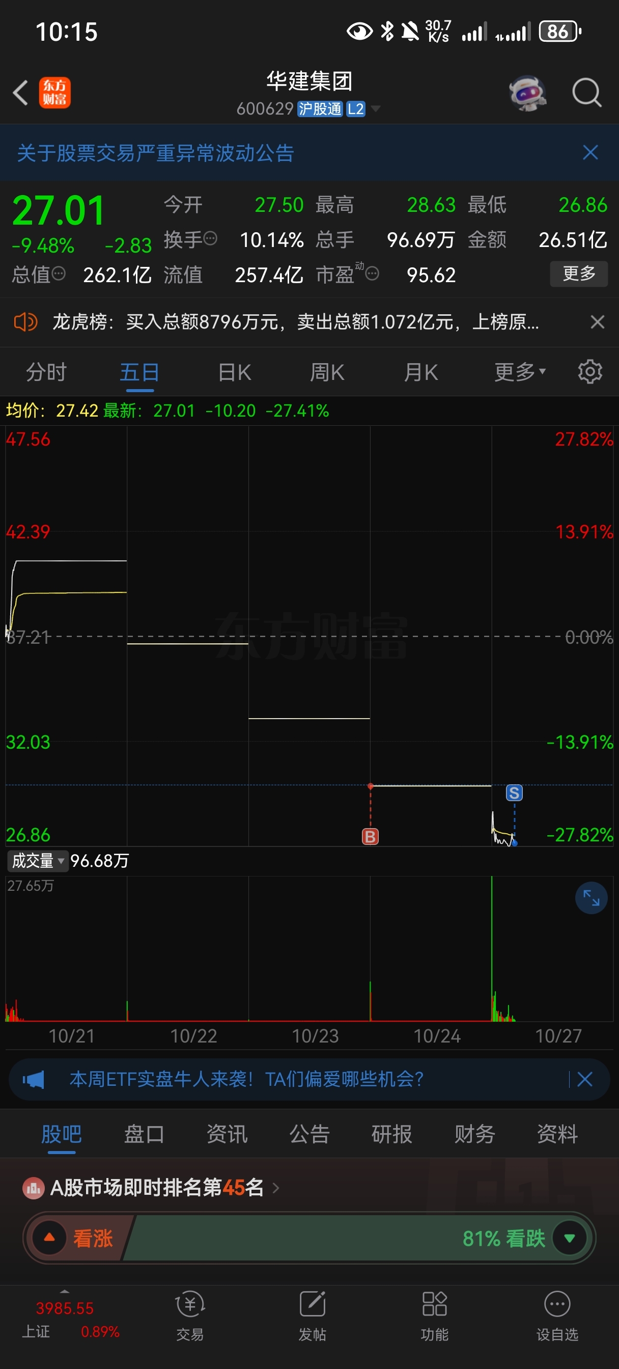 $华建集团(SH600629)$ 走了,今天跌停,后天进。或者进。没有跌停,没有大阴线不进