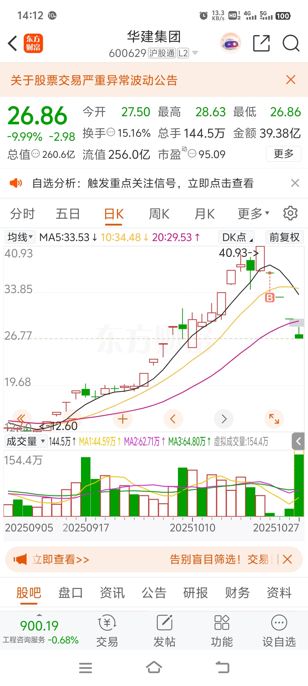 $华建集团(SH600629)$ 买进天天跌,本想抄底结果被抄家