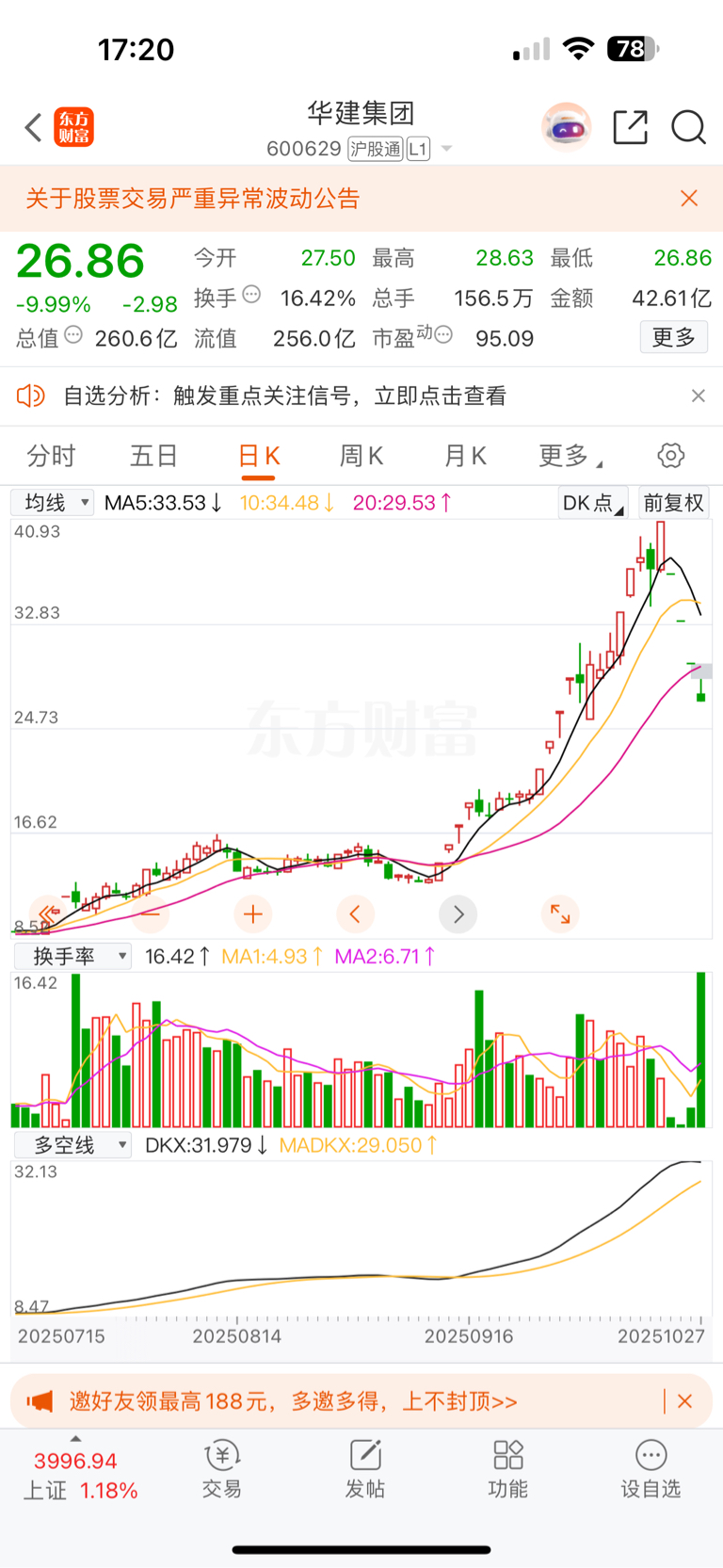 $华建集团(SH600629)$ 跌了-40多,堪比A杀,明天再一个大跌应该差不多了,后续应该会有一个大级别反抽,预计3个板左右!