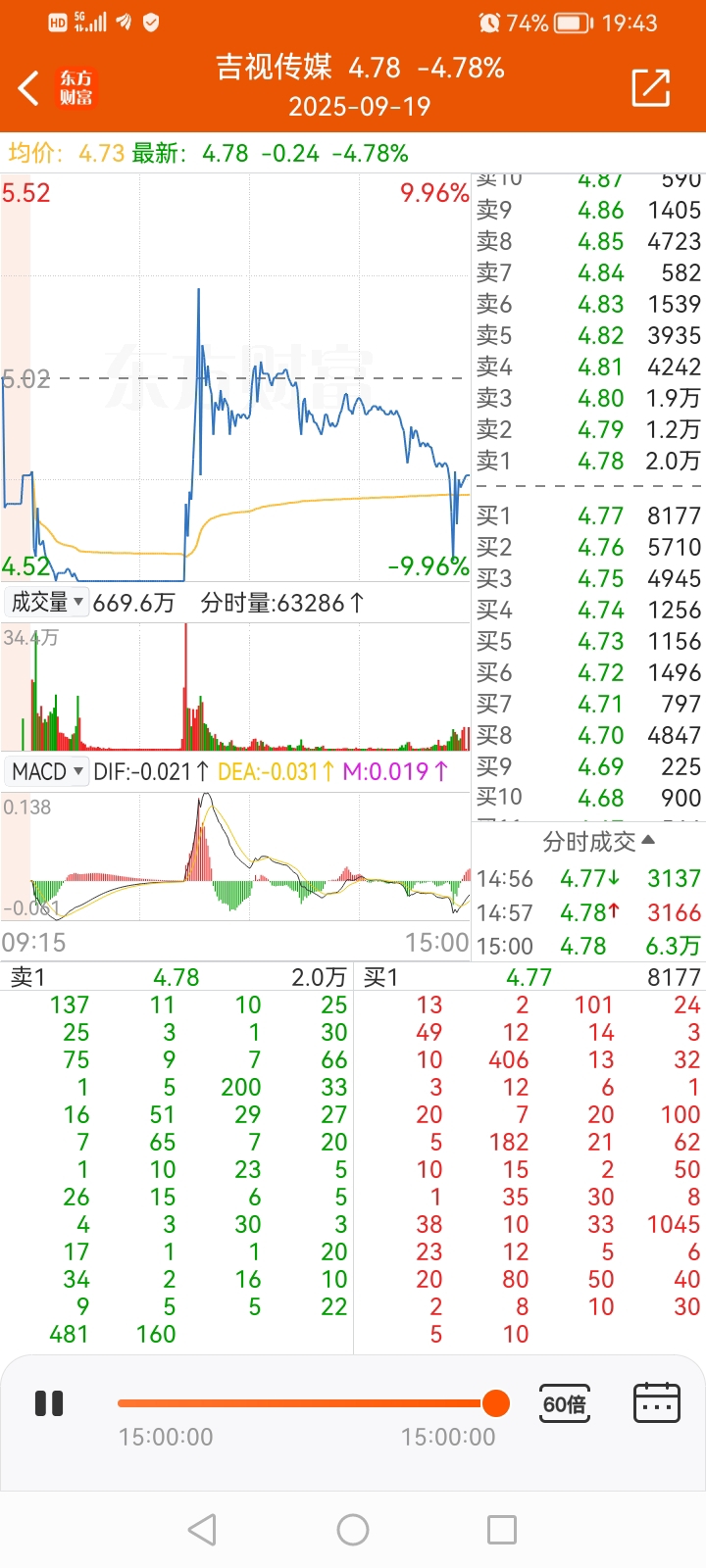$华建集团(SH600629)$ $吉视传媒(SH601929)$ 华建集团庄太弱了,看看吉视传媒的庄怎么拉高出货的?