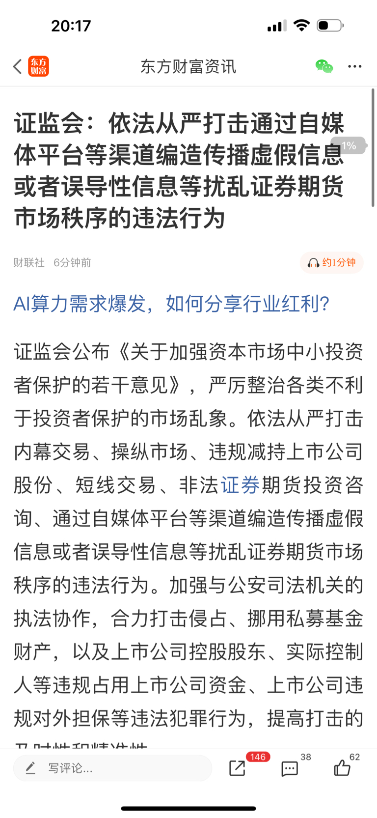 温馨提示: 1.根据《证券法》规定,禁止编造、传播虚假信息或者误导性信息,扰乱证券市场;2.用户在本社区发表的所有资料、言论等仅代表个人观点,与本网站立场无关,不对您构成任何投资建议。用户应基于自己的独立判断,自行决定证券投资并承担相应风险。《东方财富社区管理规定》