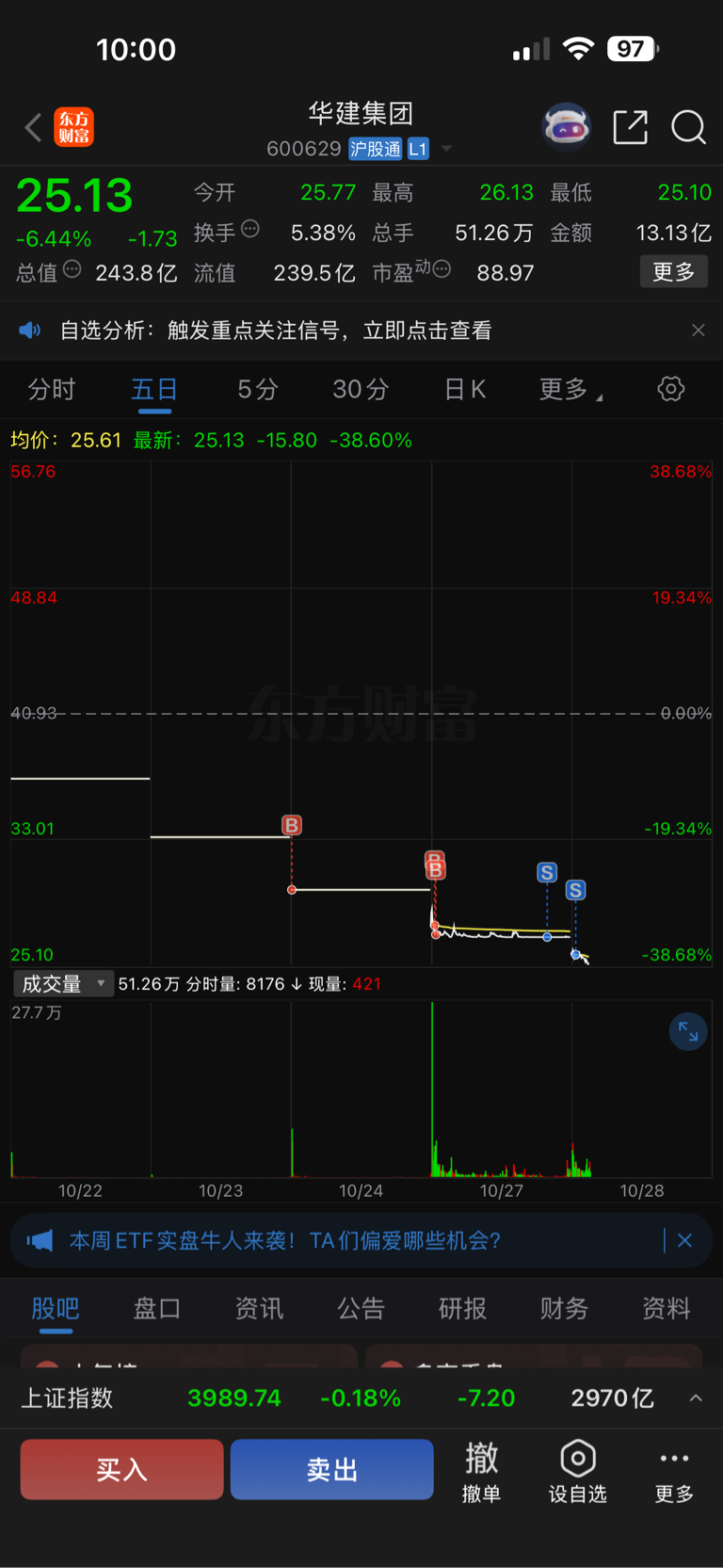 5天亏6板!兄弟们,不要赌,不要赌,虽然我也很希望华建能拉起来,但事实摆在这里,