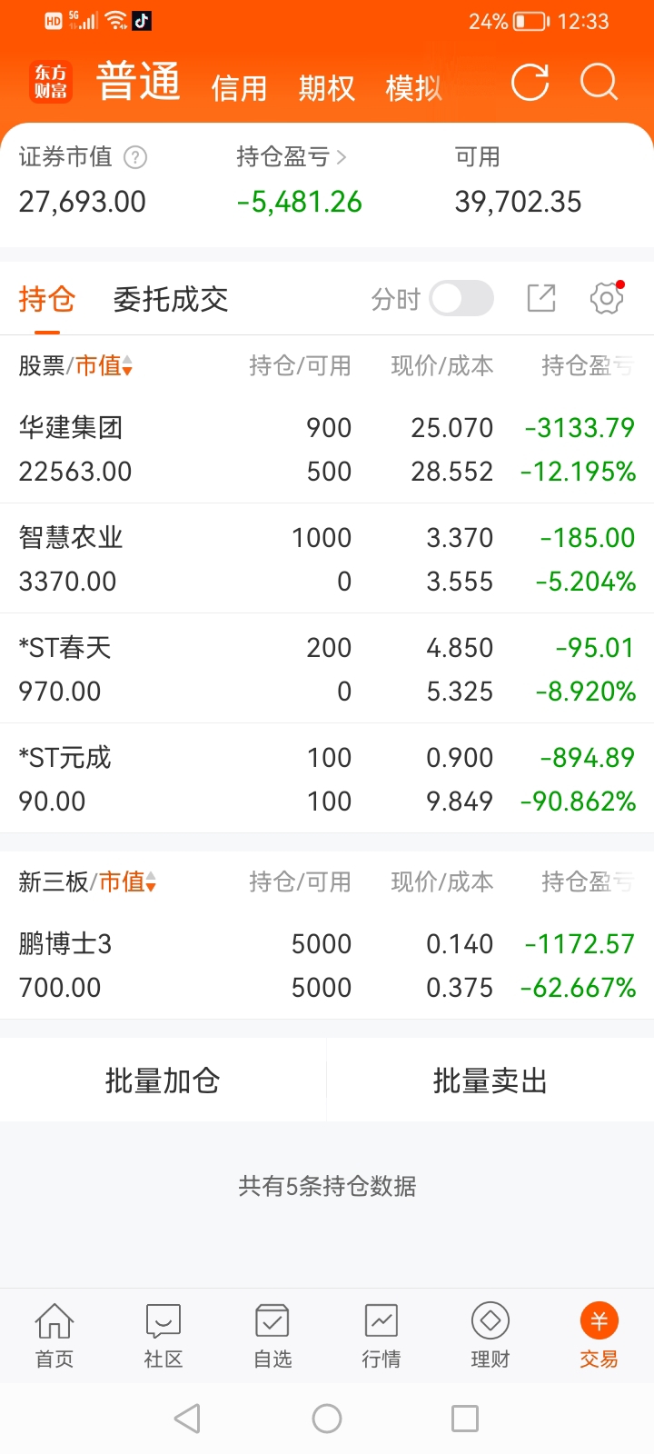 年初抄底鹏博士去了老三板,前几天抄底ST元成好不容易跑出去,又抄底华建集团再次入