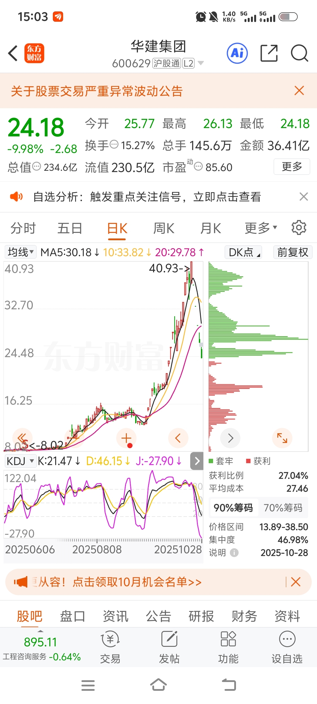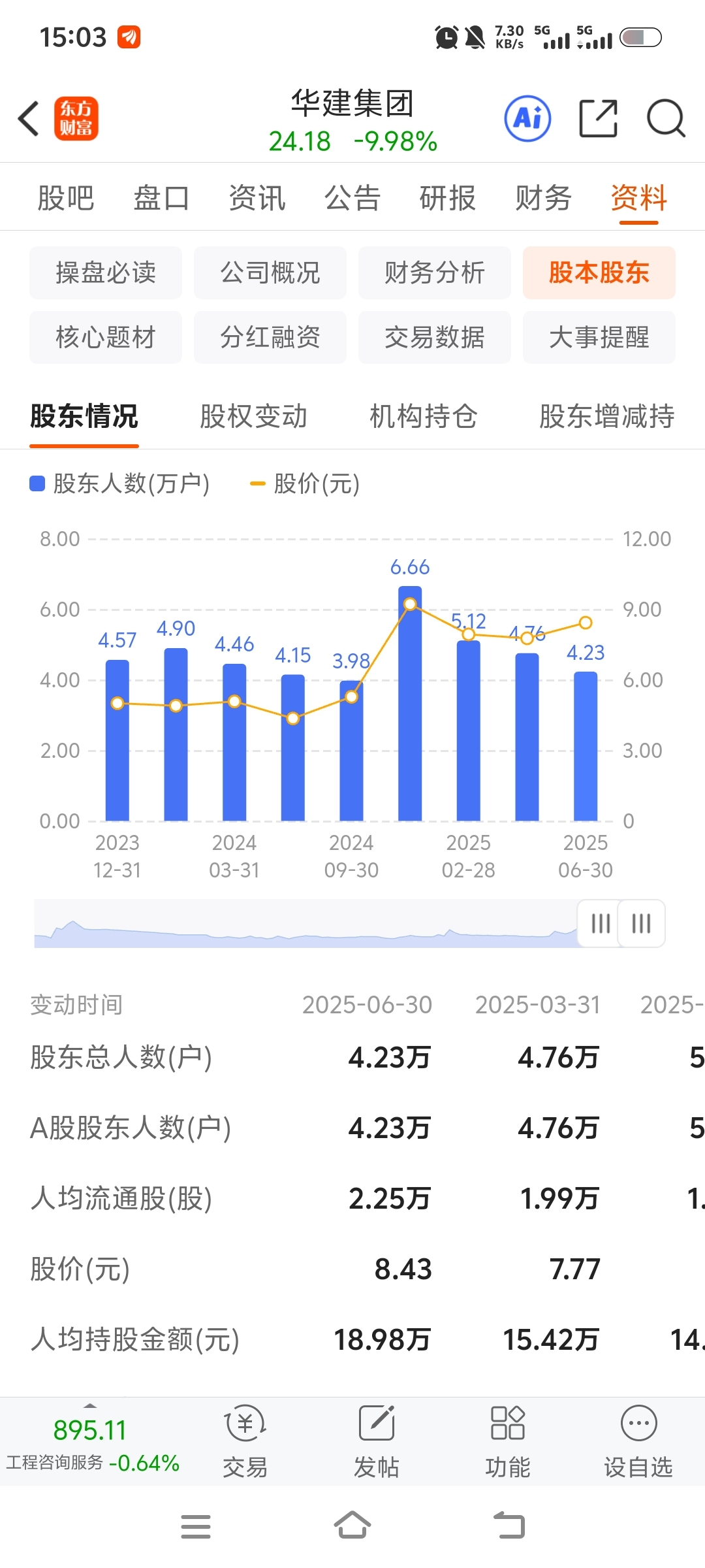 $华建集团(SH600629)$ 股东数只有4万多,老股民都不看好,短线还是别抄底了吧。
