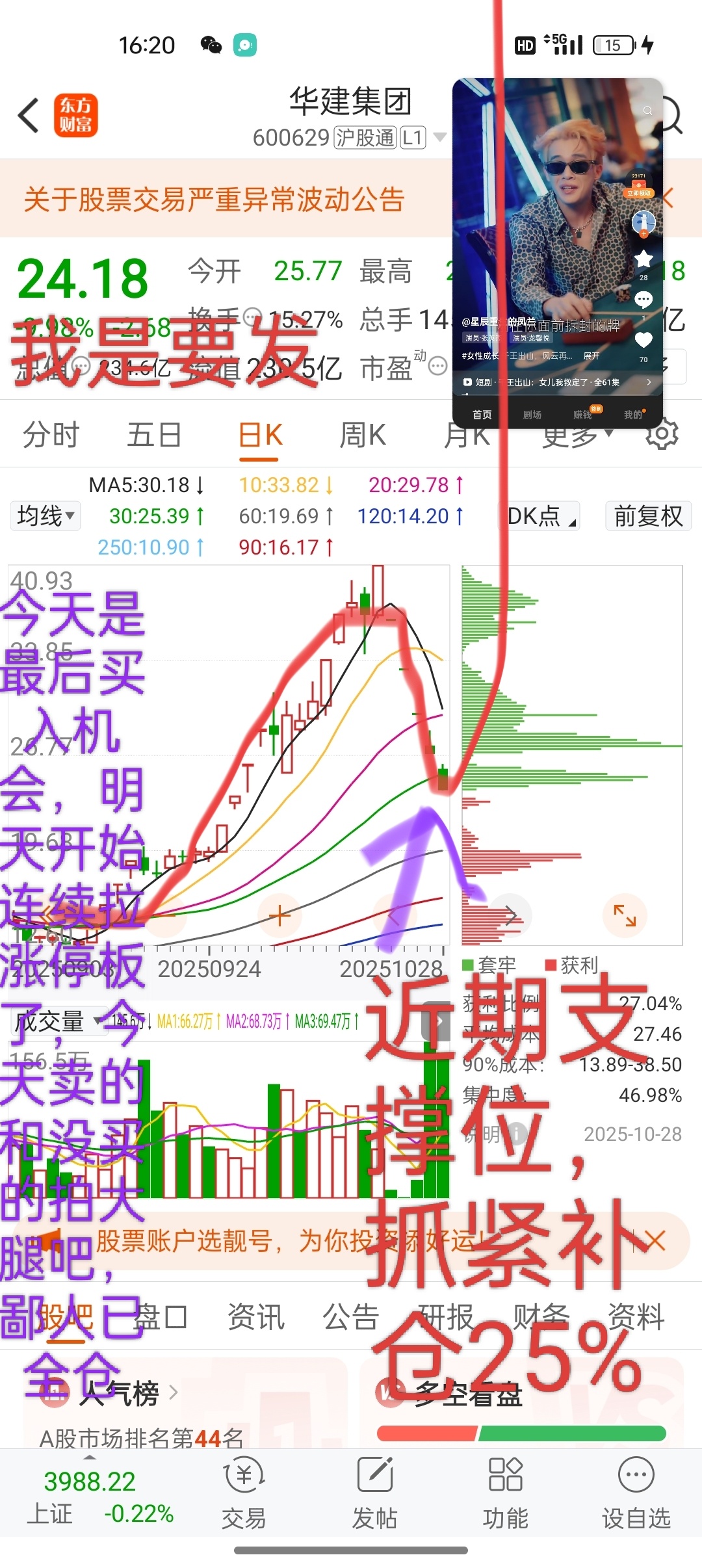 $华建集团(SH600629)$ 据我分析以及这两日研判,此股具备妖股气质,今天是朱莉最后一次洗盘和大家上车机会啦,我已全仓,我心目中的走势是这样子的,可能后面买不到了,恭喜还在坚持的朋友,