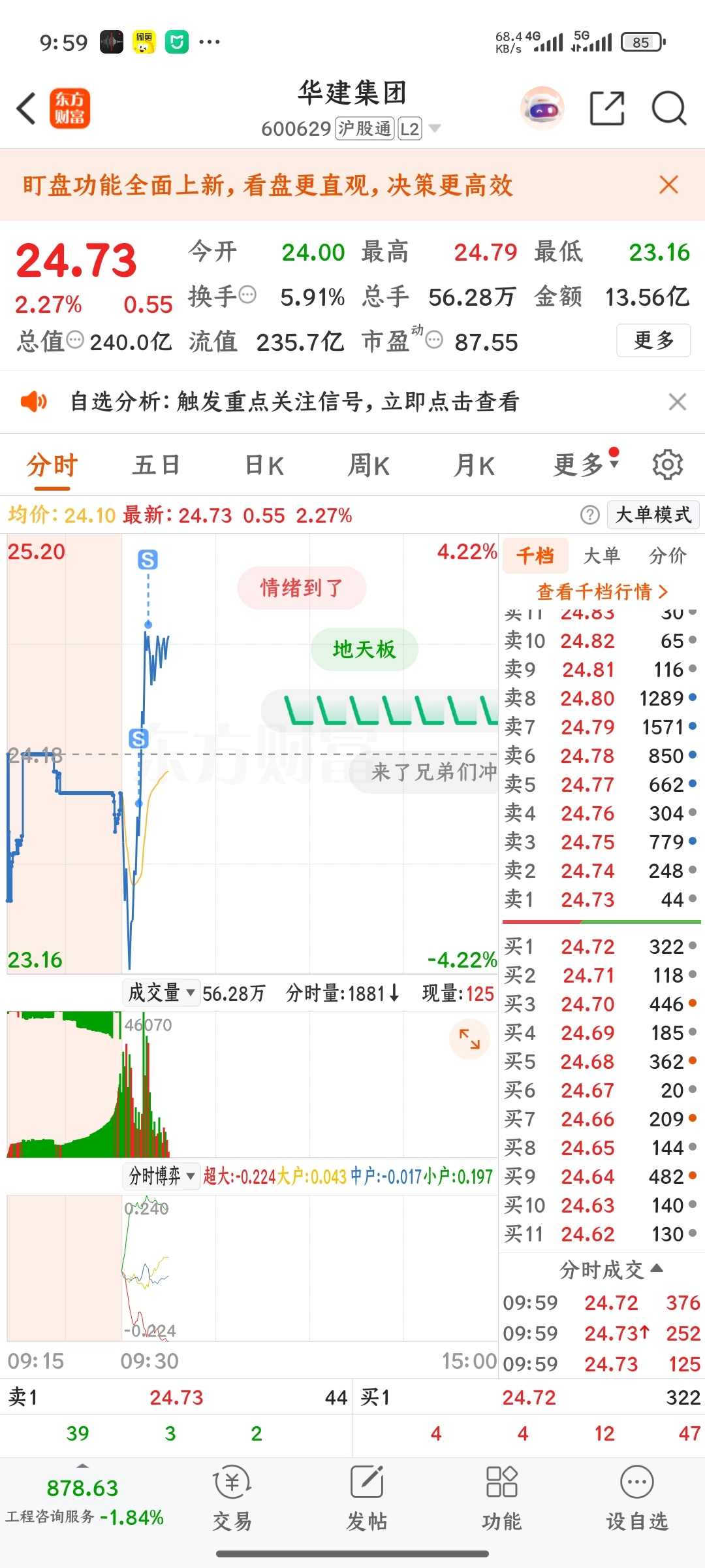 $华建集团(SH600629)$ 水下卖了一半,水上卖了一半。小赚一点。