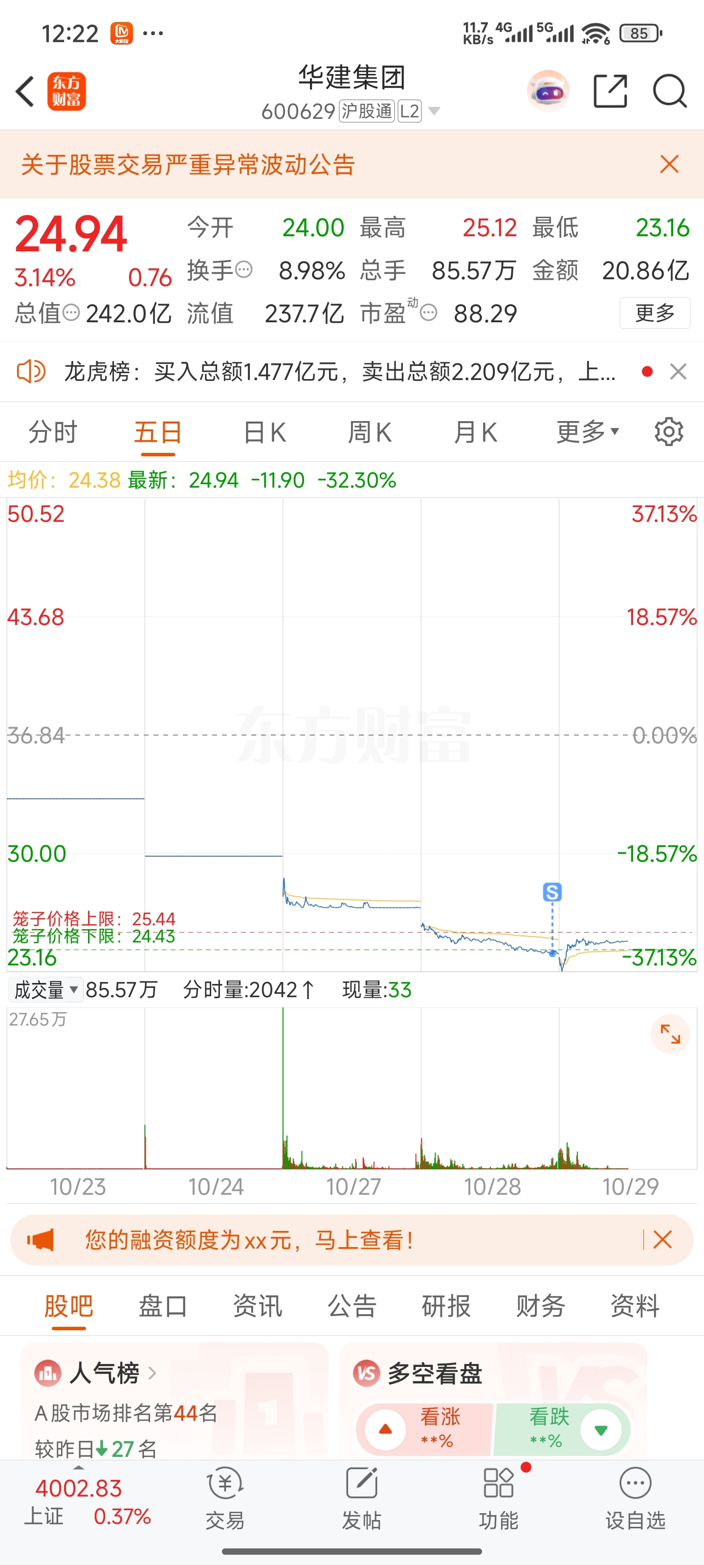 $华建集团(SH600629)$ 现在比接了5个地板都难受……