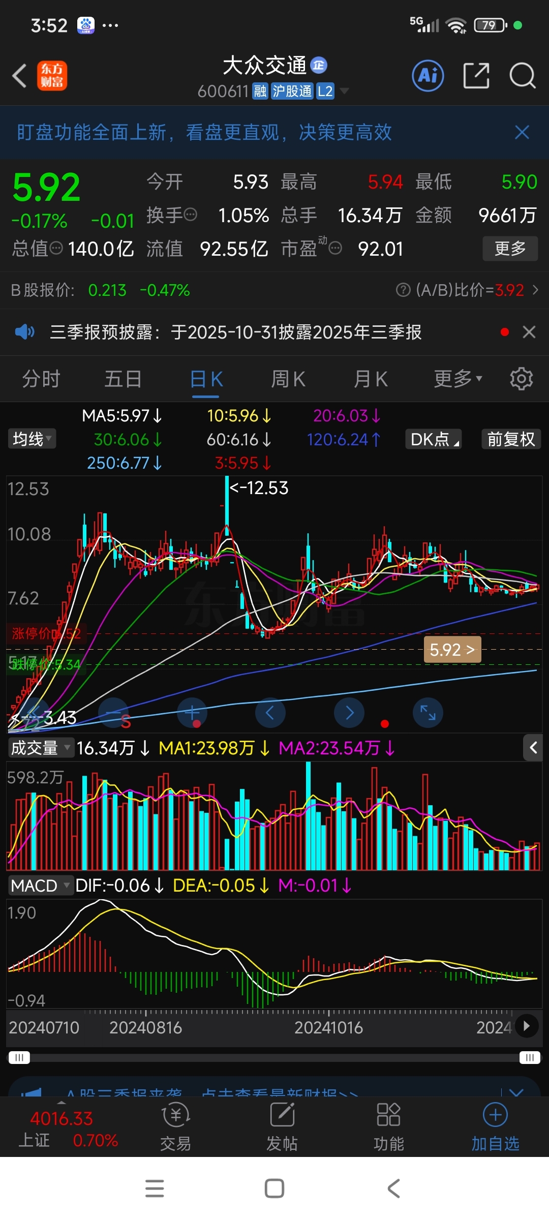 $华建集团(SH600629)$ 要相信相信的力量!写给迷茫的人,包括我自己。9.24前后非ST五个跌停的,这是第三只,去看看大众,雪龙吧,今天的低点可能是未来两月的低点,后面会缩量盘整,历史会重复但不会简单的重复,呆在这个位置比待在僵尸股里有盼头多了。我看好至少收复到第二个一字跌停板位置。