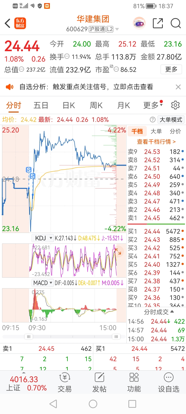 早上水全部清仓了,以后不抄底翻倍妖股!大盘冲上4000点了,买华建集团这个LJ股