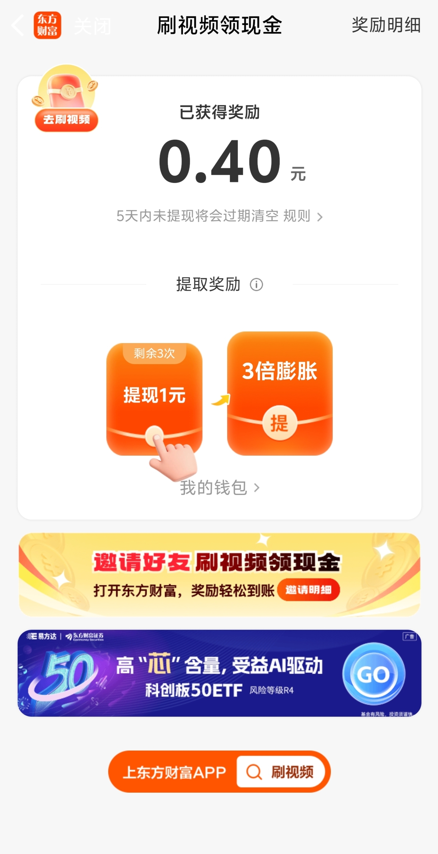 东财现在可以刷视频领红包了,这2天天天吃面,没事的来我专栏看视频领红包买火腿肠吧