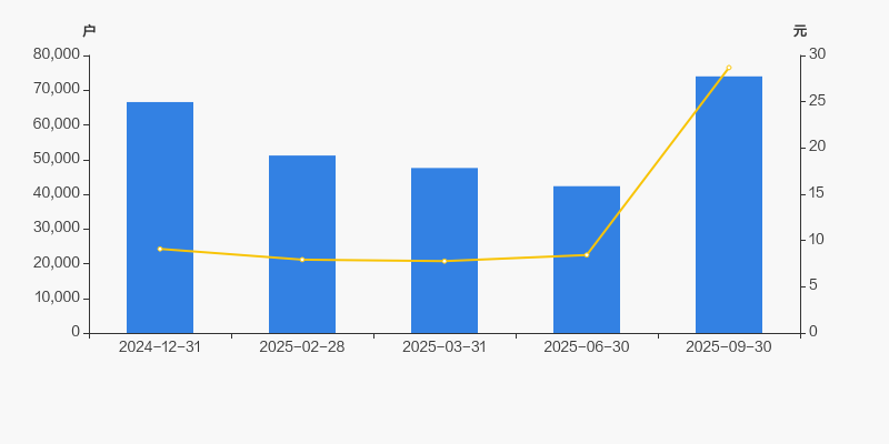2024年12月31日至今,公司股东户数显著增长,区间涨幅为11.12%。2024年12月31日至2025年9月30日区间股价上涨215.70%。