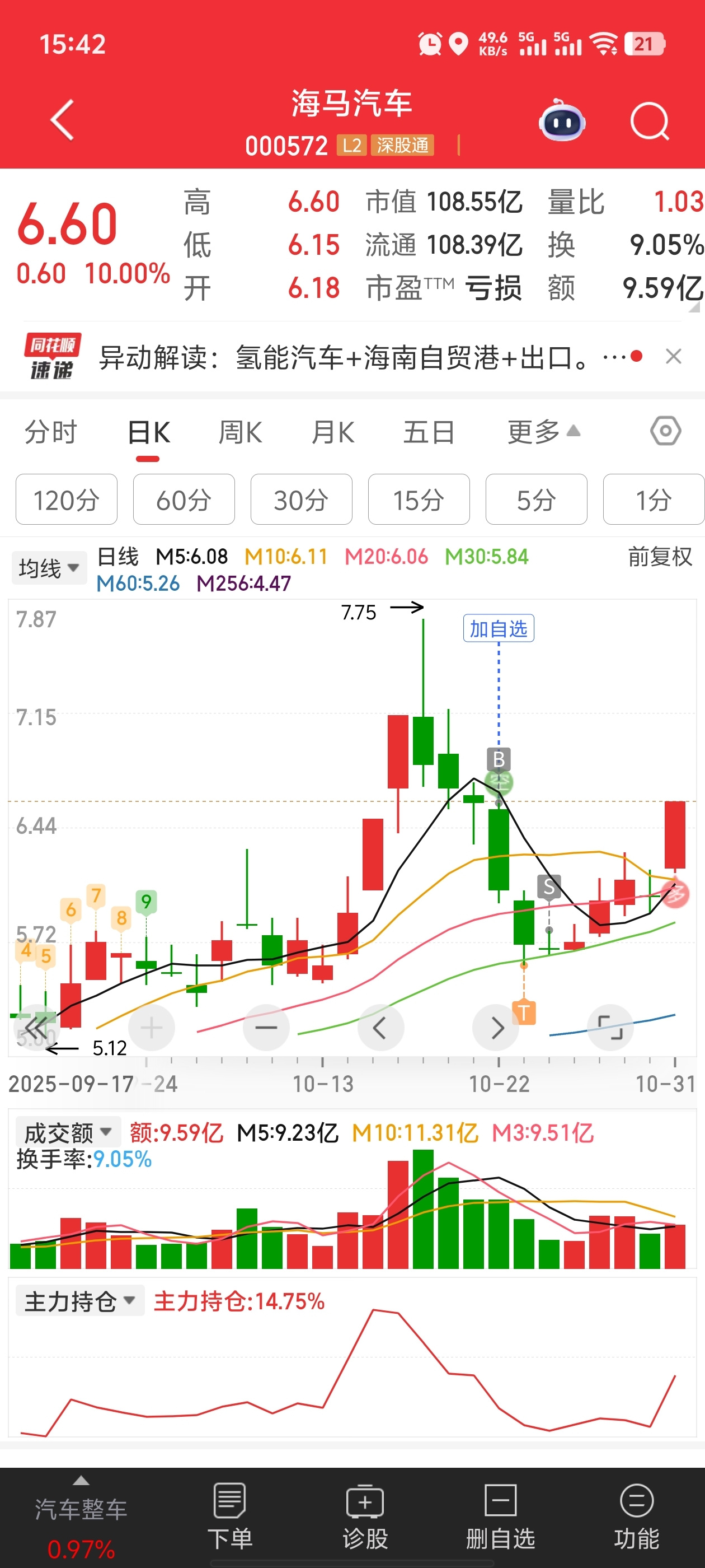 抄底要能拿的住,拿不住就去追涨停海马汽车到底了做t给t飞了。