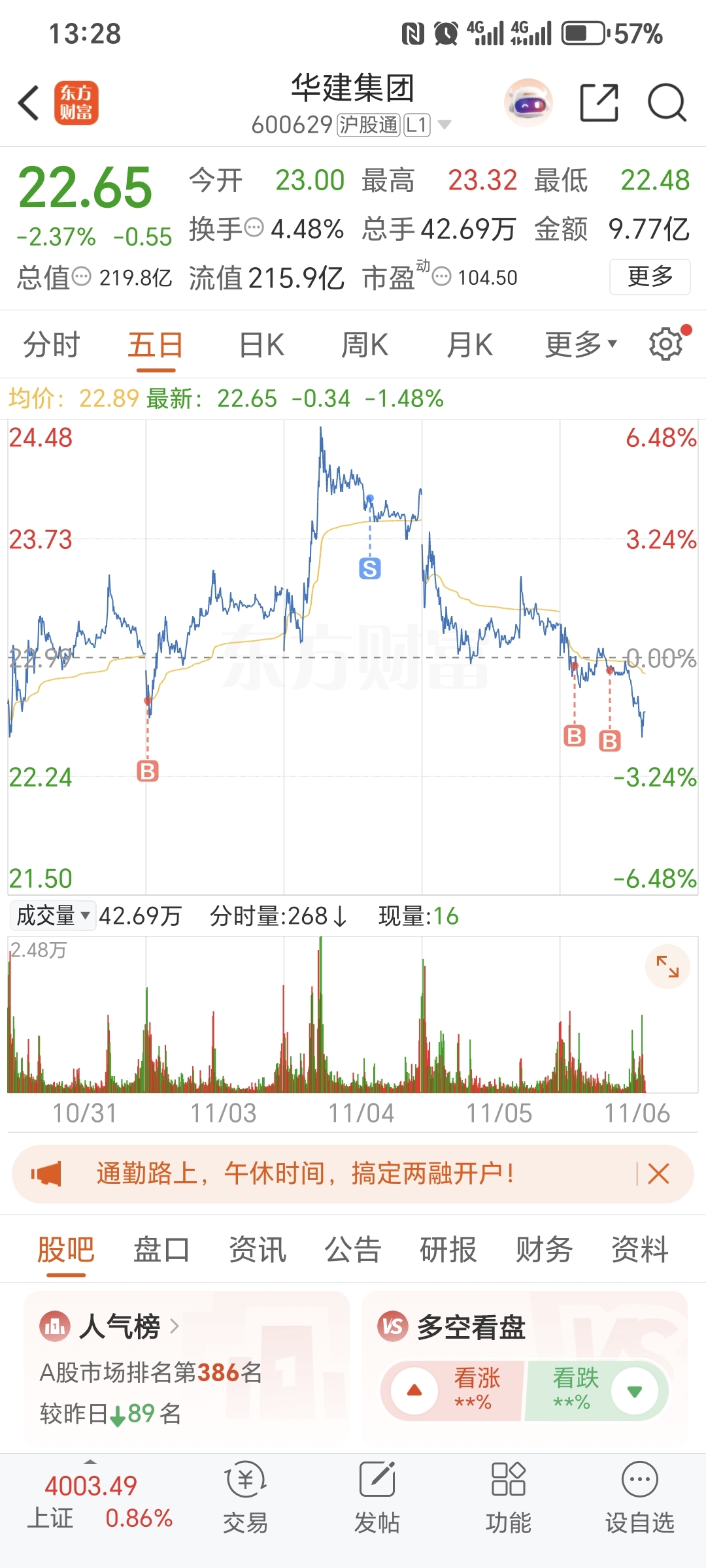 $华建集团(SH600629)$ 有本事跌停哦