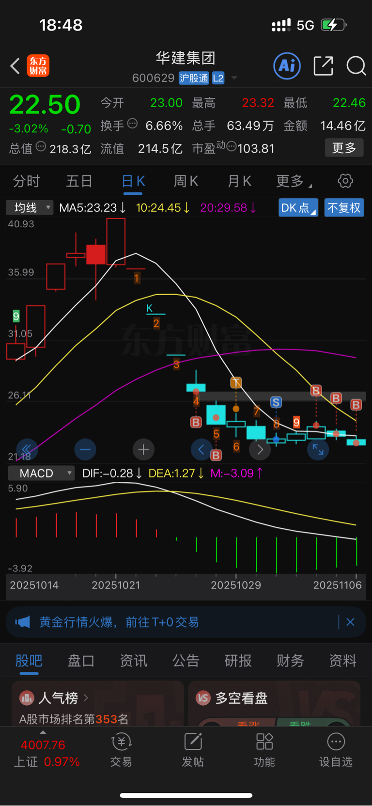 $华建集团(SH600629)$ 牛逼的公司 买一次套一次,一年赚的钱全亏这里了,明天开盘就跑,千万别给我机会,要么直接跌停,虽然只有20手