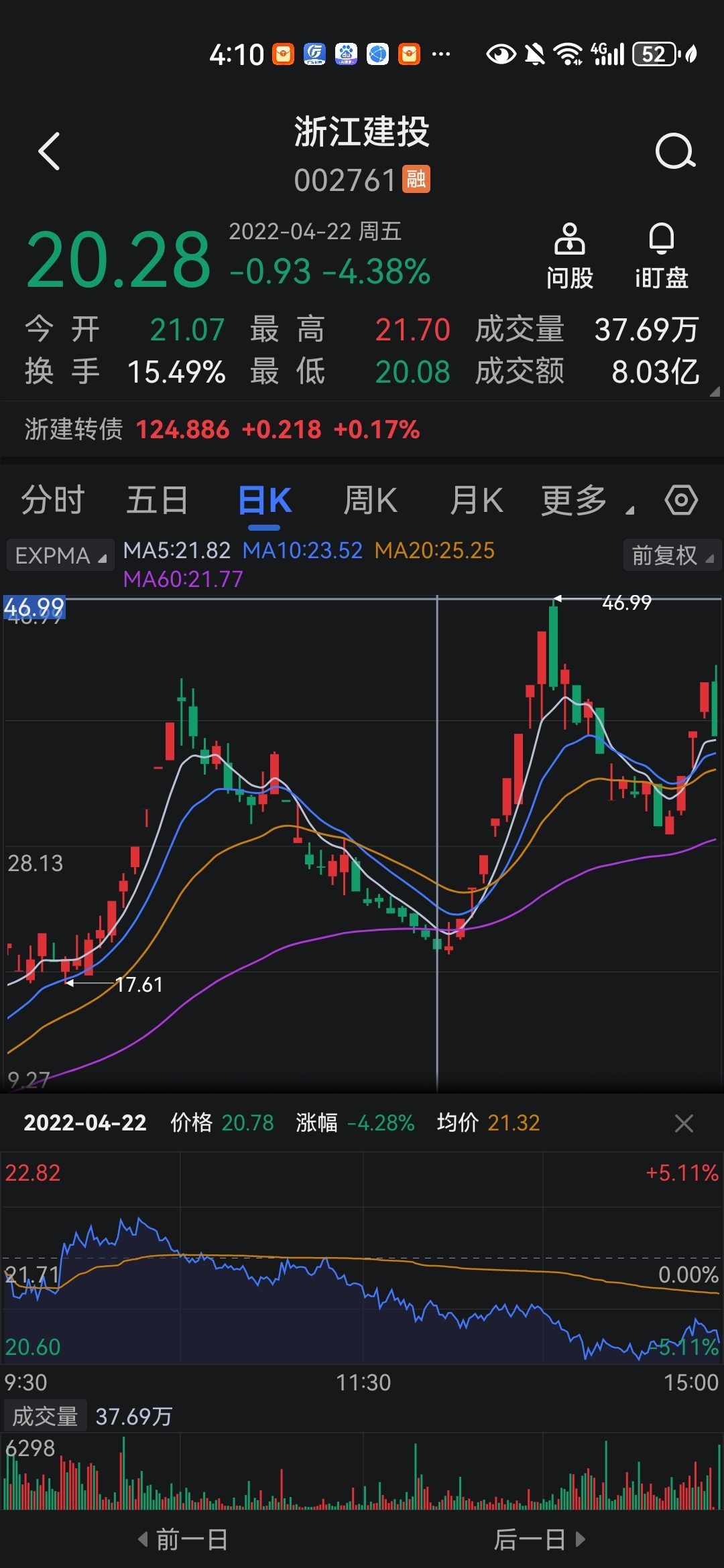 点开看当天具体走势,其实最低点19.88是很不容易买到的,实际能买到的低点还是在