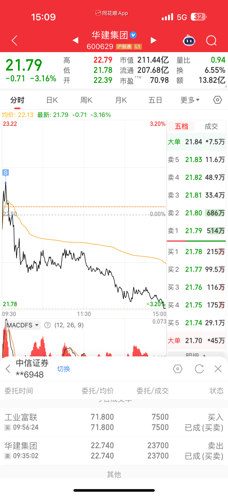 $华建集团(SH600629)$ 昨天尾盘买的,还好今天早上高点跑了