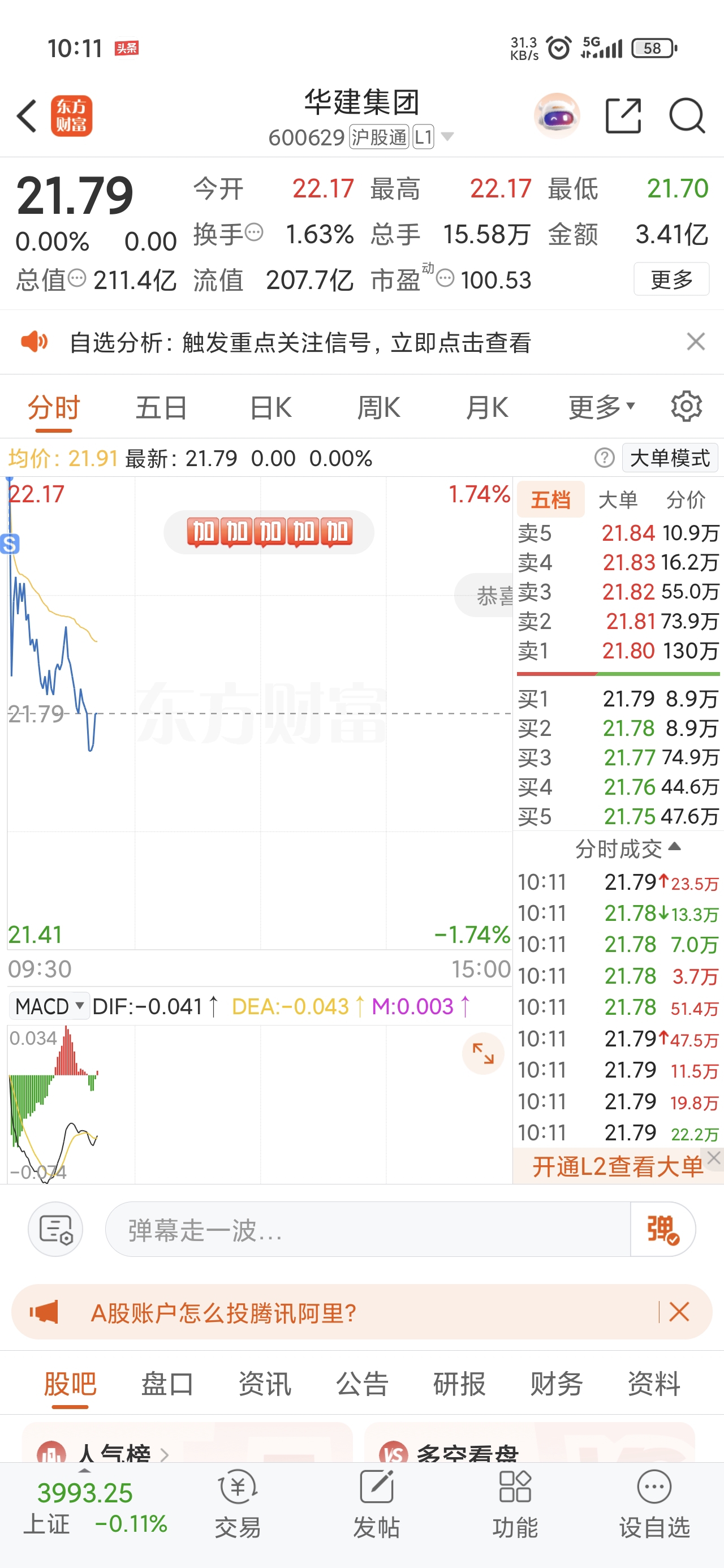 $华建集团(SH600629)$ 集合竞价卖了,下午接回来