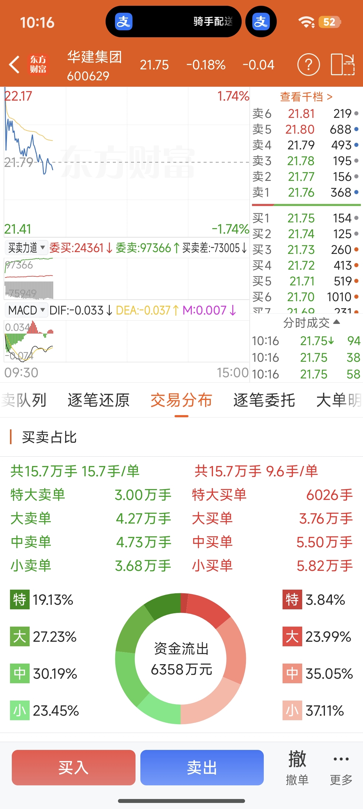 $华建集团(SH600629)$ 今天目标,继续流出两个亿,加油主力,大单快点砸