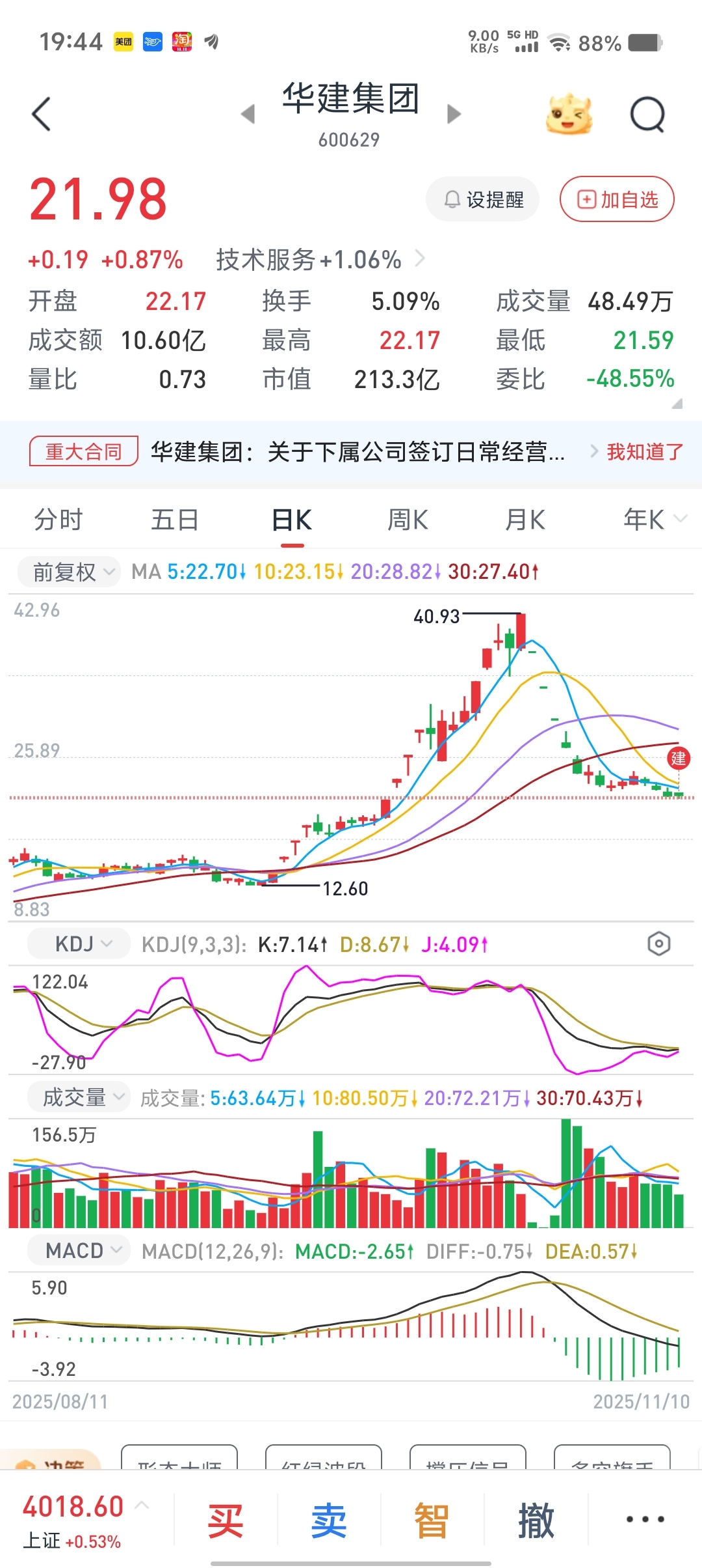 $华建集团(SH600629)$ 盯了十来天了。今天开始建仓了。