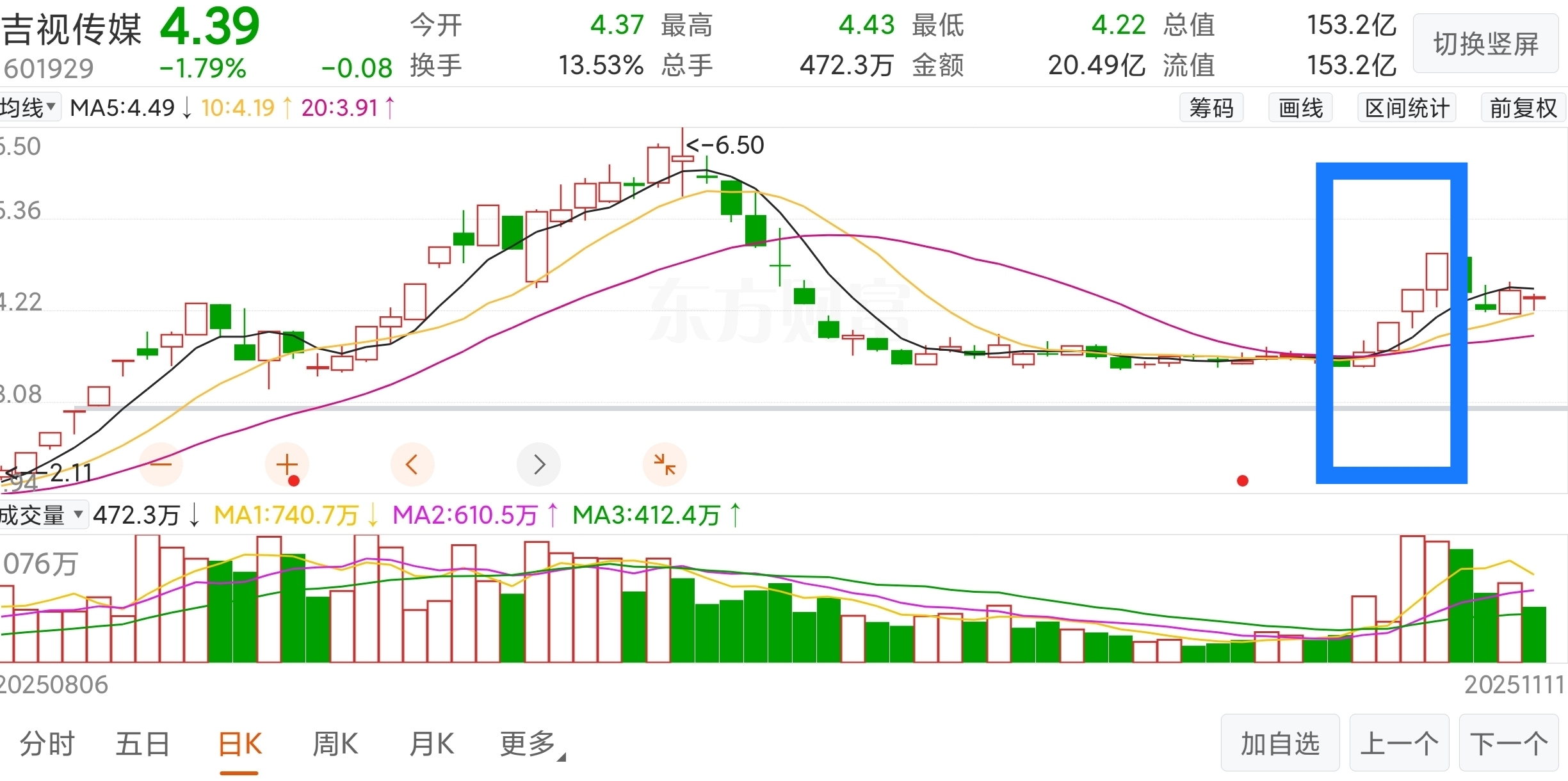 今年长城军工赚了20%,吉视传媒赚了30%,今天买入华建集团,不贪心,赚25%就