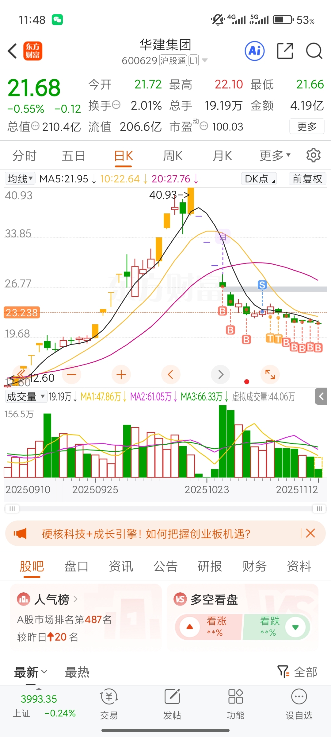 $华建集团(SH600629)$ 熬不住了,明天割肉#实盘记录# #股市怎么看#