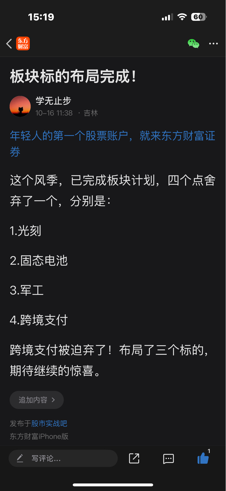 温馨提示: 1.根据《证券法》规定,禁止编造、传播虚假信息或者误导性信息,扰乱证券市场;2.用户在本社区发表的所有资料、言论等仅代表个人观点,与本网站立场无关,不对您构成任何投资建议。用户应基于自己的独立判断,自行决定证券投资并承担相应风险。《东方财富社区管理规定》