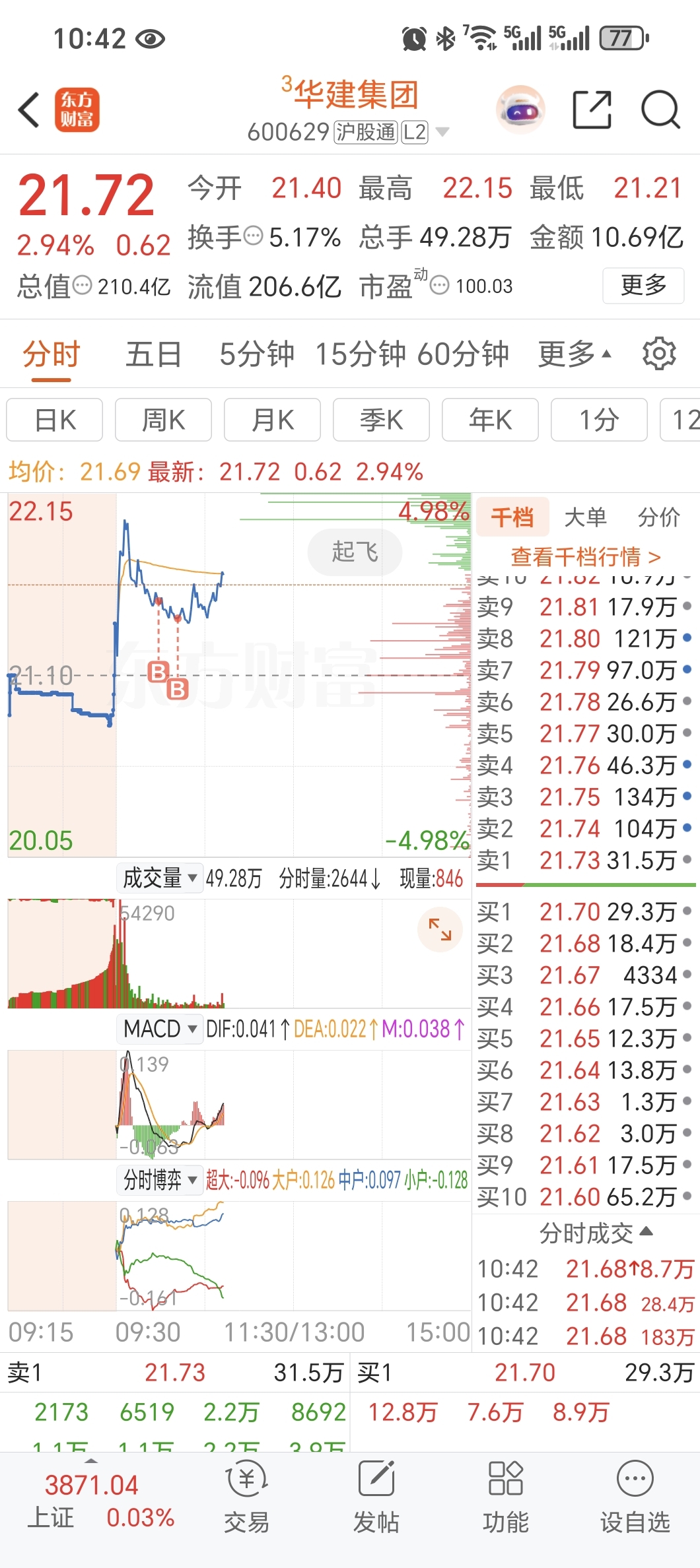 $华建集团(SH600629)$ 没T哦,继续加仓,奈奈的,竞价5日线挂单买不进去。