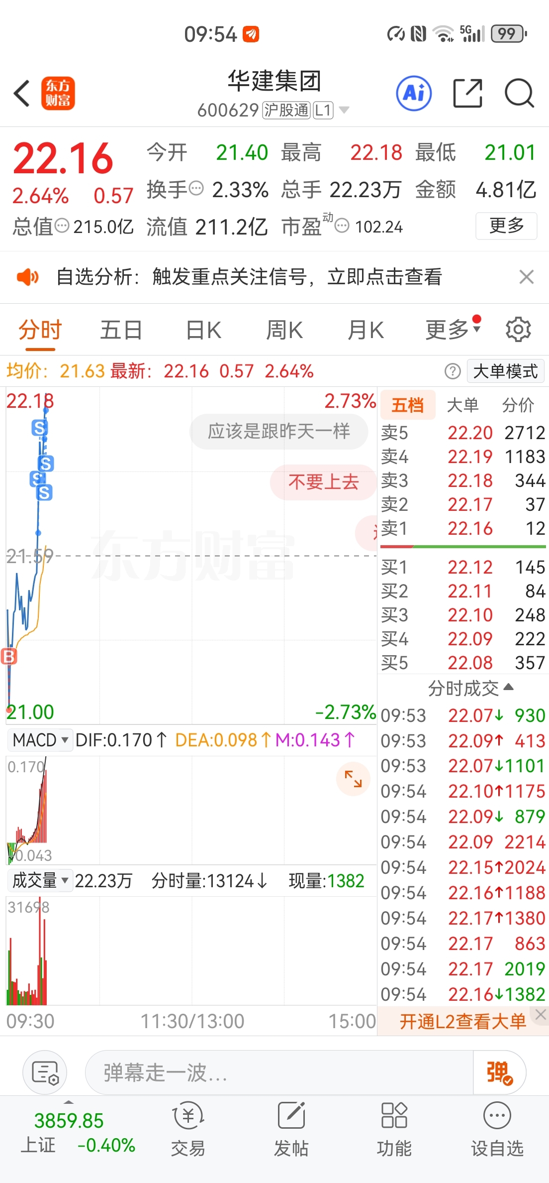 $华建集团(SH600629)$ 好了,你可以跌了,我再慢慢补