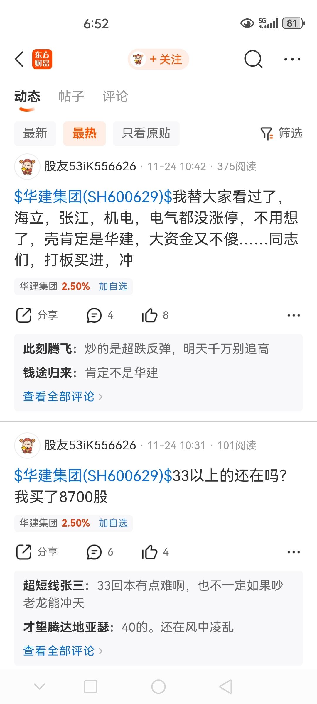 $华建集团(SH600629)$ 大家都来看看这个13,哈哈哈哈哈,应该是被套了割肉了,33买的,哈哈哈,